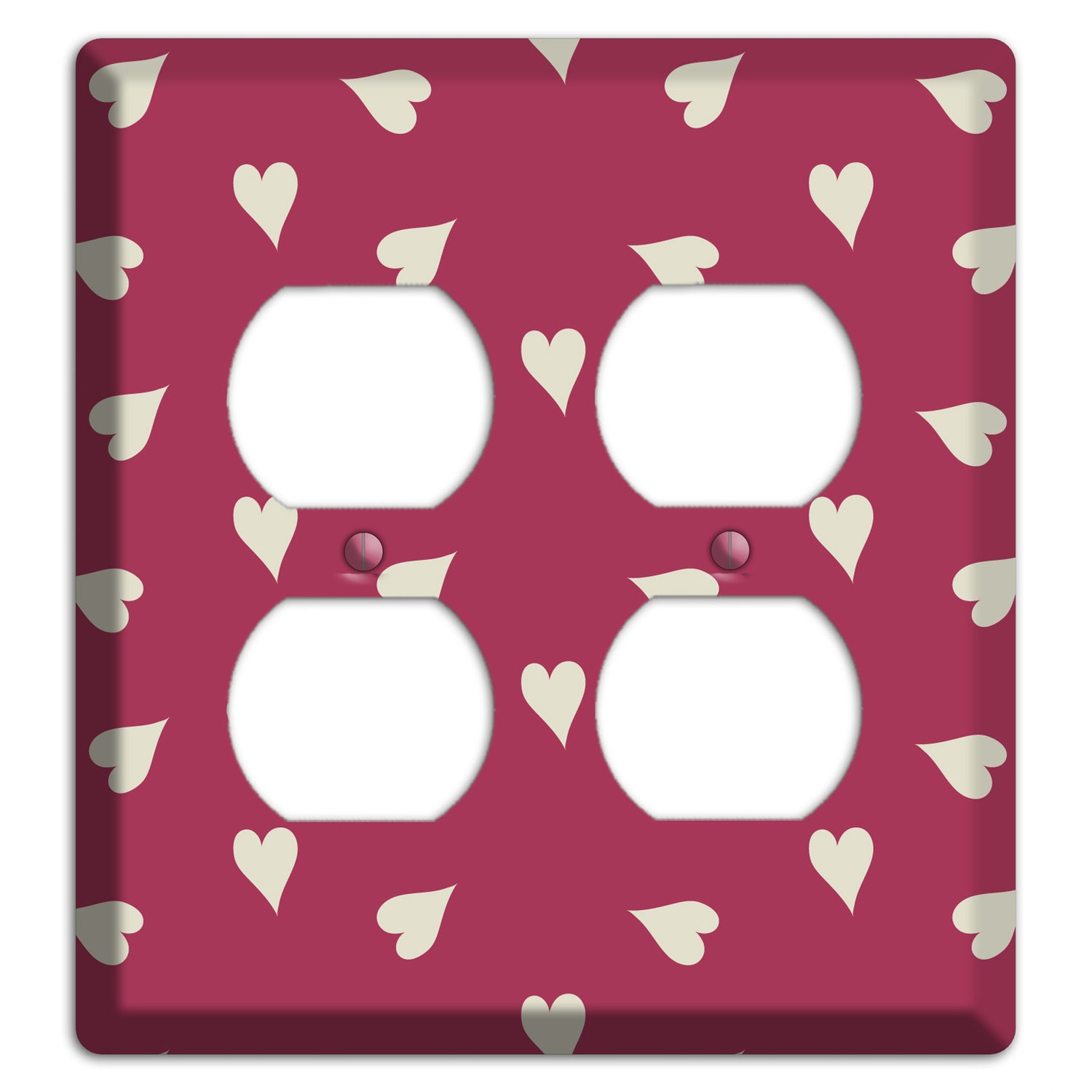 The Fuschia with White Hearts 2 Duplex Wallplate are very unique and cannot be found anywhere else. These USA made metal plates are highly detailed and made with some of the newest UV imaging technology available resulting in photograph quality prints on durable metal switchplates.