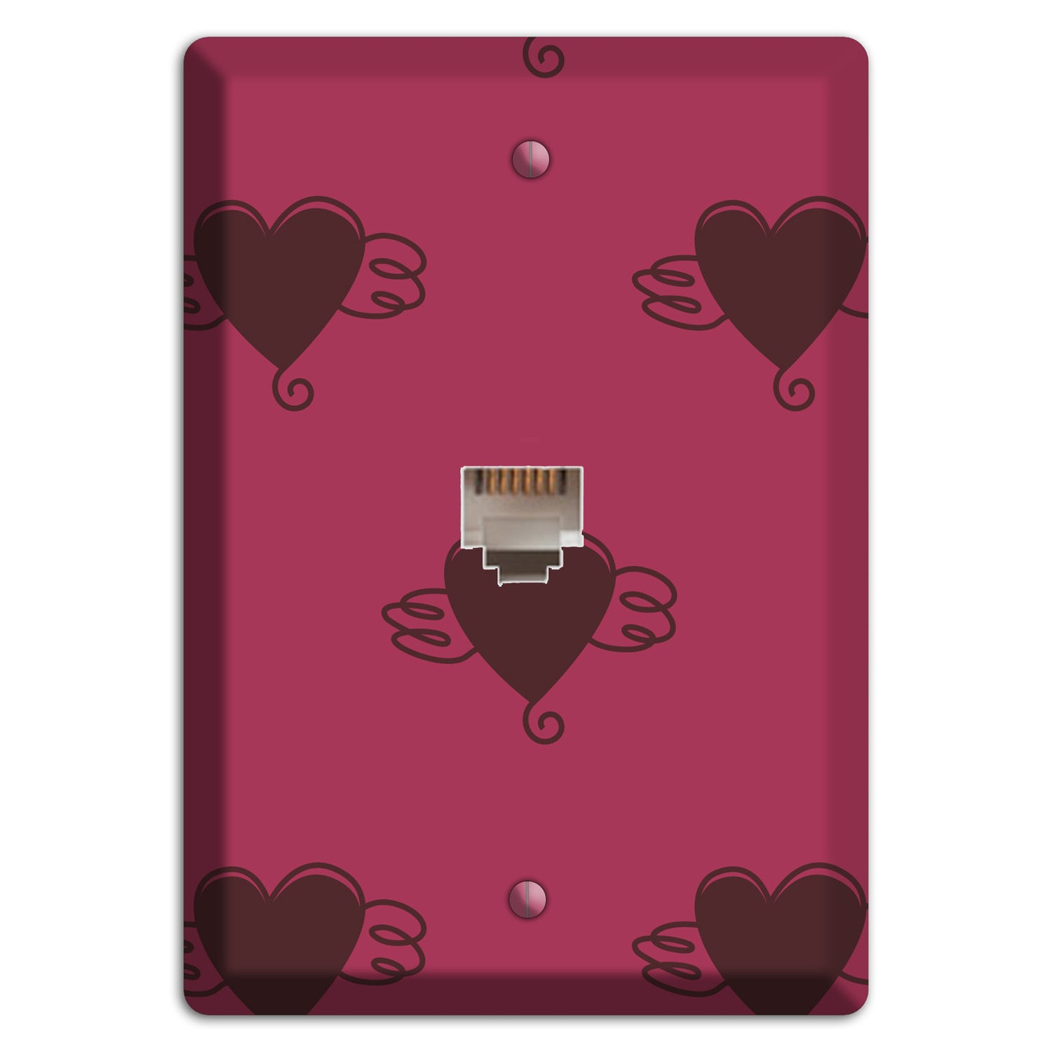 The Fuschia Winged Hearts 2 Phone Wallplate are very unique and cannot be found anywhere else. These USA made metal plates are highly detailed and made with some of the newest UV imaging technology available resulting in photograph quality prints on durable metal switchplates.