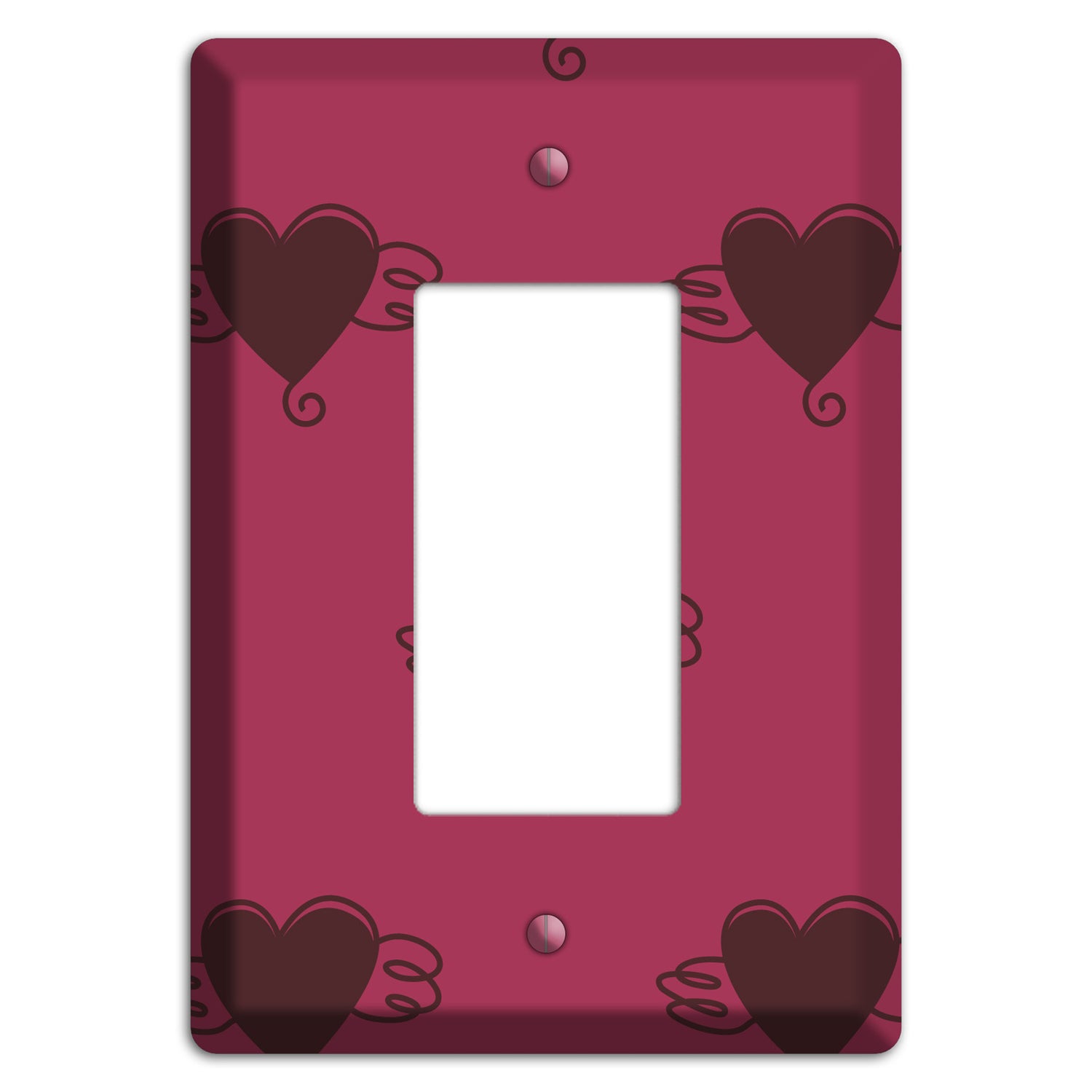 The Fuschia Winged Hearts 2 Rocker Wallplate are very unique and cannot be found anywhere else. These USA made metal plates are highly detailed and made with some of the newest UV imaging technology available resulting in photograph quality prints on durable metal switchplates.