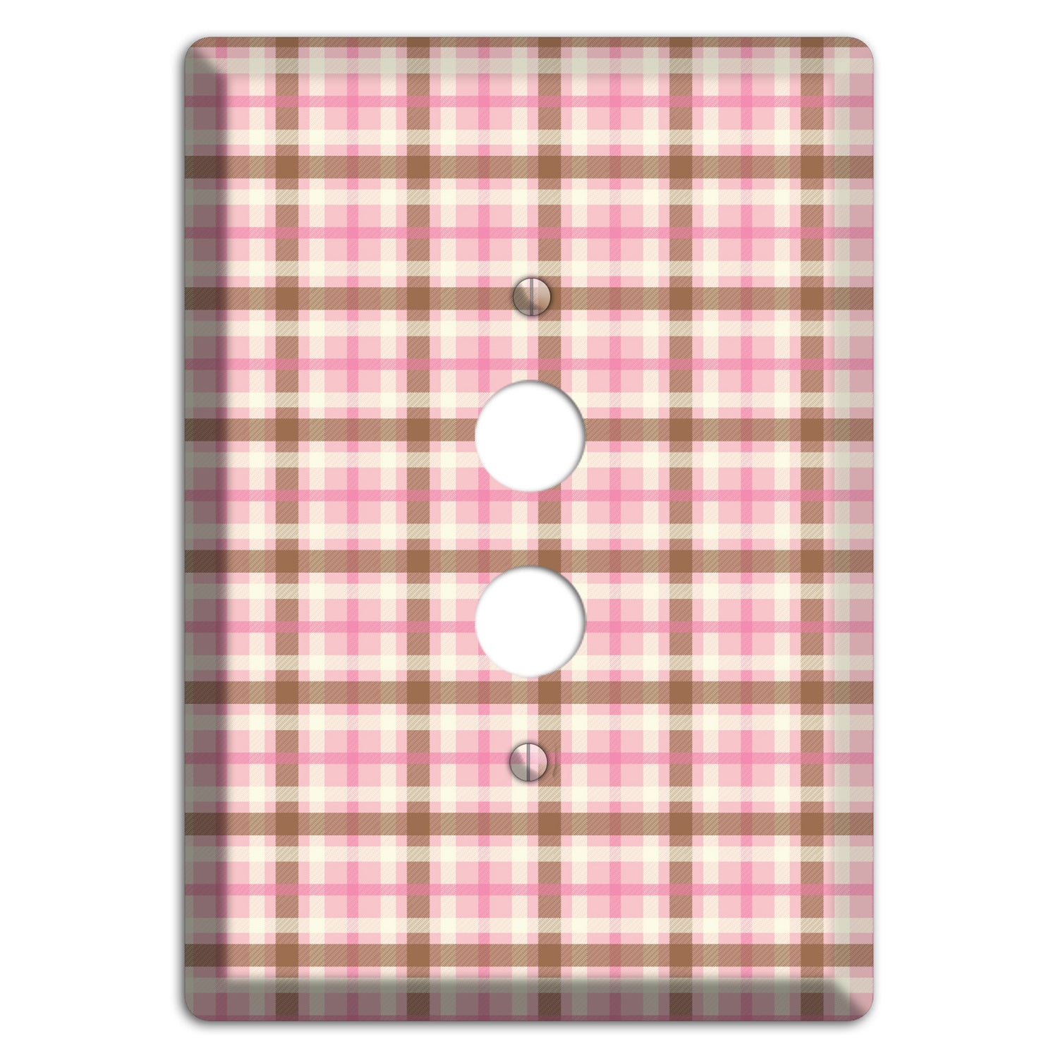 The Pink and Brown Plaid 1 Pushbutton Wallplate are very unique and cannot be found anywhere else. These USA made metal plates are highly detailed and made with some of the newest UV imaging technology available resulting in photograph quality prints on durable metal switchplates.
