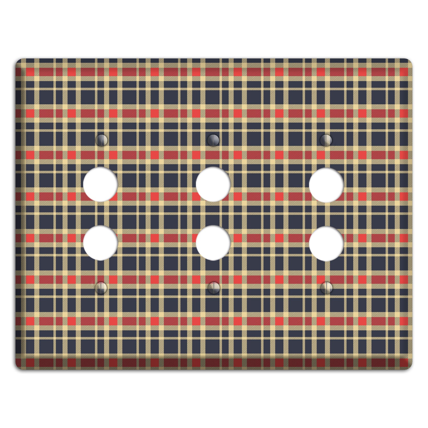The Maroon and Black Plaid 2 3 Pushbutton Wallplate are very unique and cannot be found anywhere else. These USA made metal plates are highly detailed and made with some of the newest UV imaging technology available resulting in photograph quality prints on durable metal switchplates.