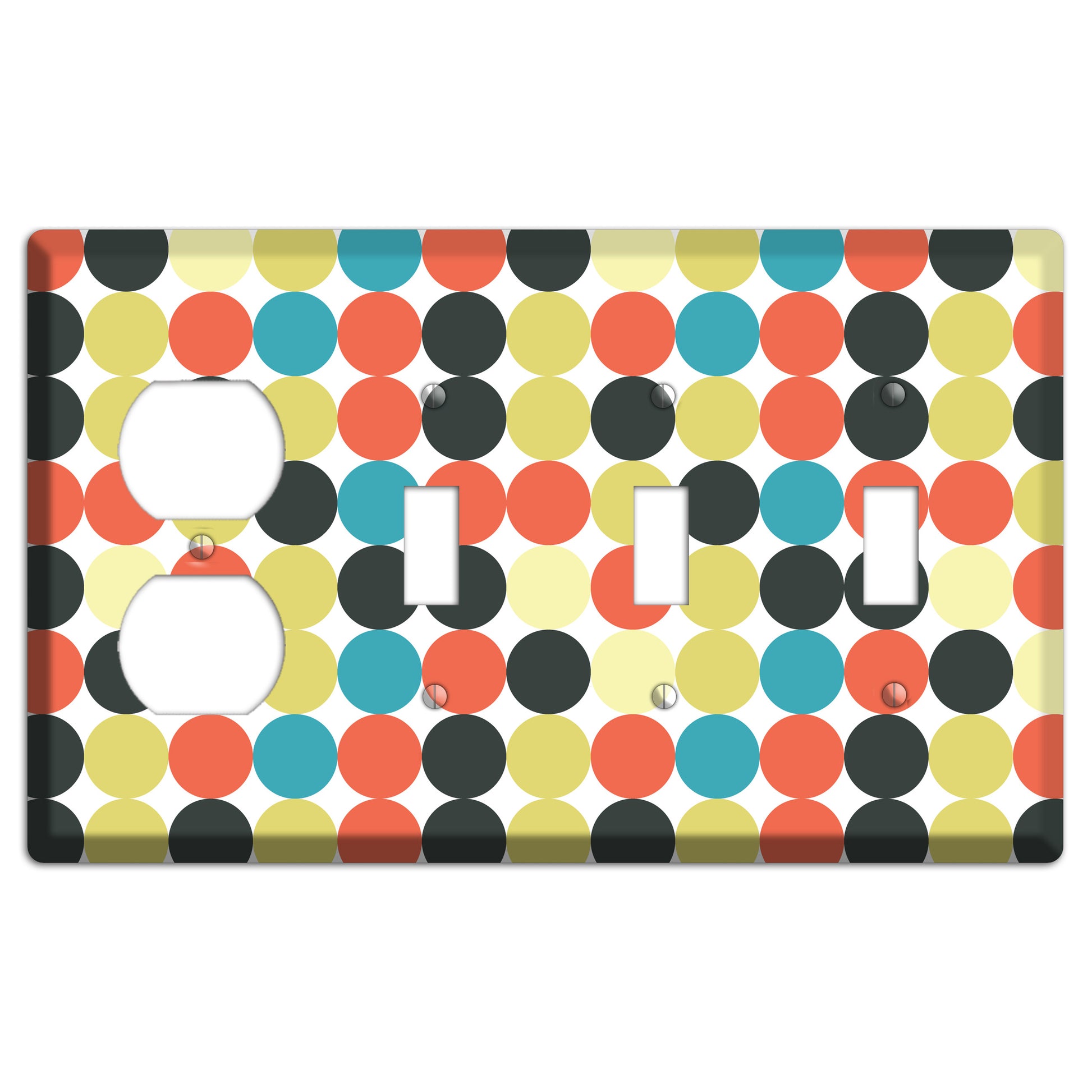 Coral Black Yellow Olive Blue Aqua Tiled Dots Duplex / 3 Toggle Wallplate