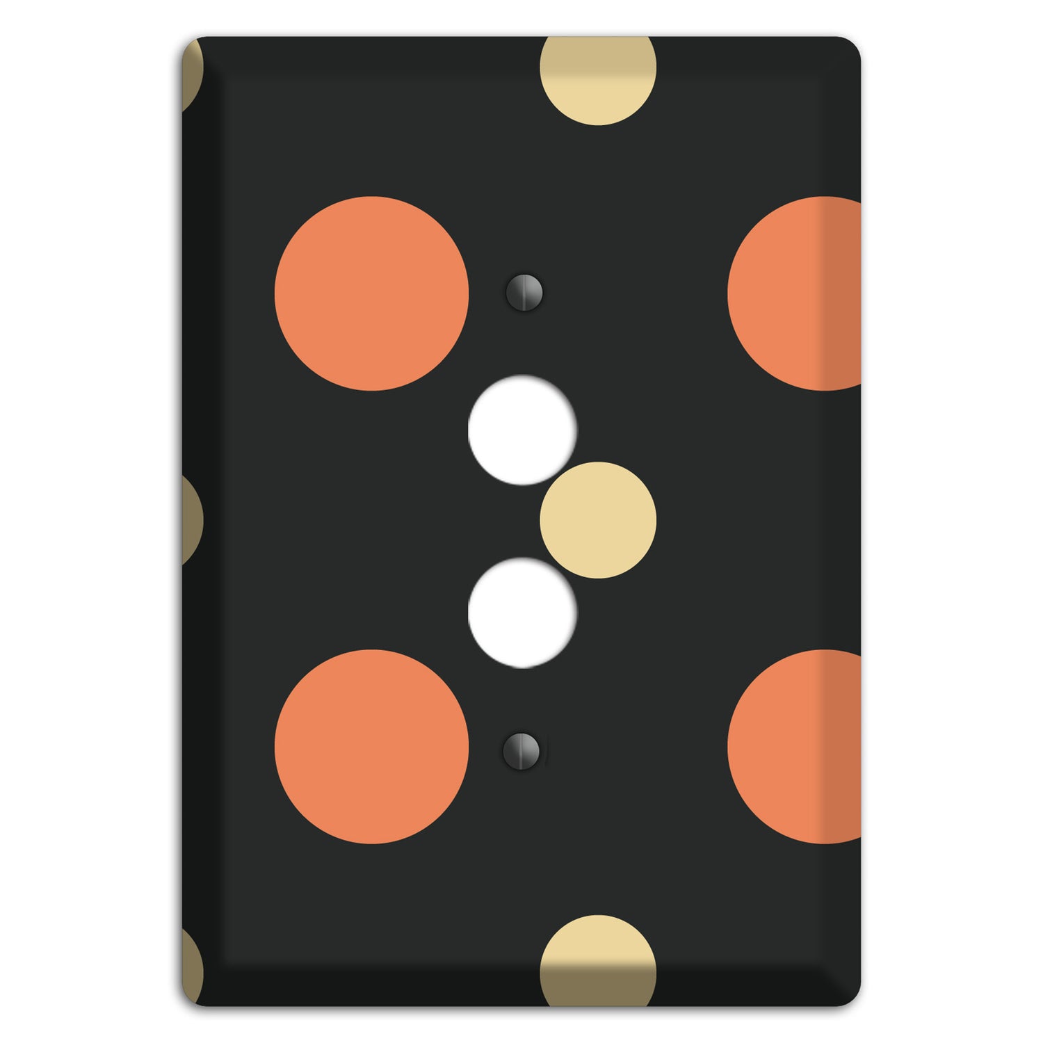 The Black with Coral and Beige Multi Medium Polka Dots 1 Pushbutton Wallplate are very unique and cannot be found anywhere else. These USA made metal plates are highly detailed and made with some of the newest UV imaging technology available resulting in photograph quality prints on durable metal switchplates.