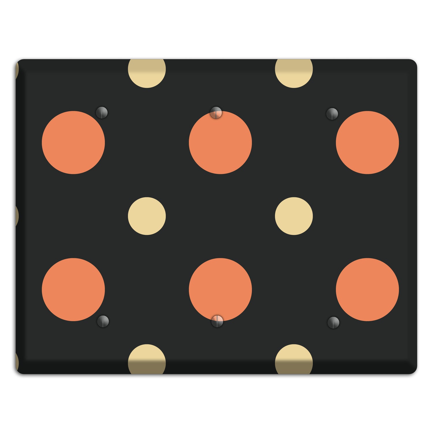 Black with Coral and Beige Multi Medium Polka Dots 3 Blank Wallplate