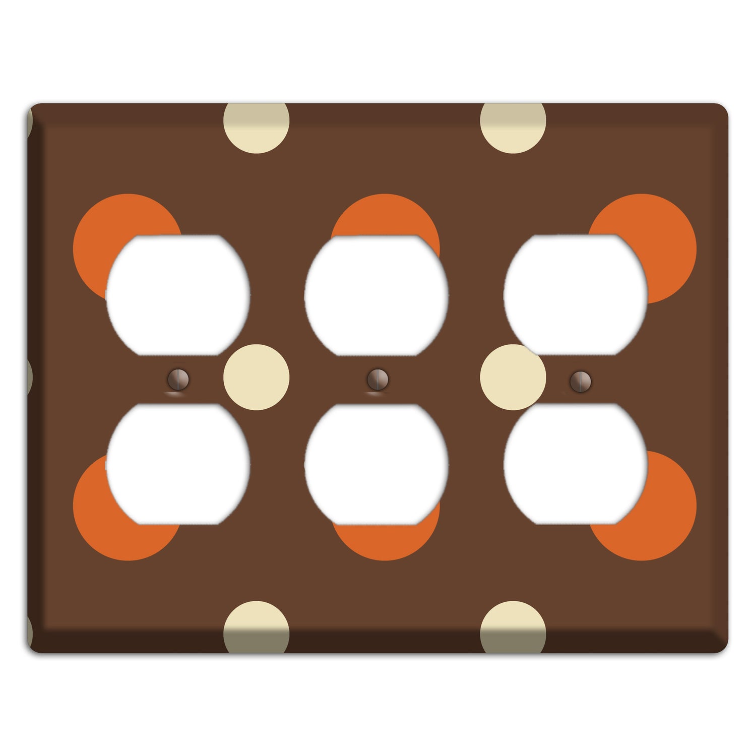 Brown with Coral and Beige Multi Medium Polka Dots 3 Duplex Wallplate