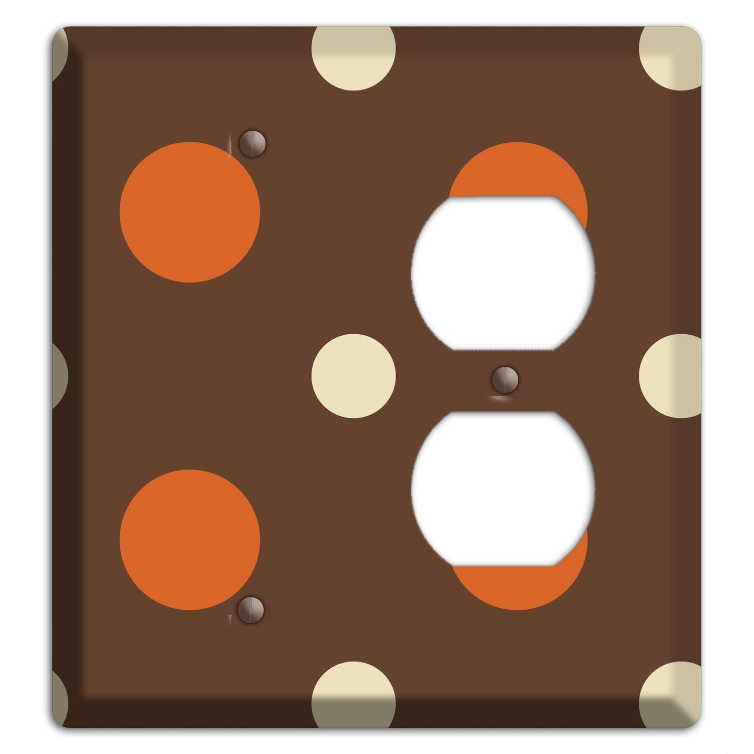 Brown with Coral and Beige Multi Medium Polka Dots Blank / Duplex Wallplate