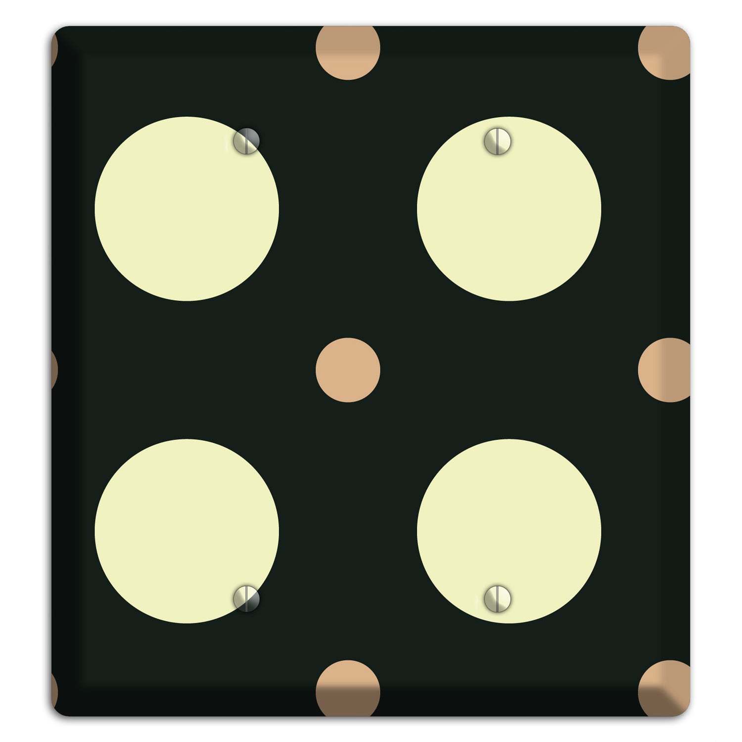 The Black with Yellow and Mauve Multi Medium Polka Dots 2 Blank Wallplate are very unique and cannot be found anywhere else. These USA made metal plates are highly detailed and made with some of the newest UV imaging technology available resulting in photograph quality prints on durable metal switchplates.