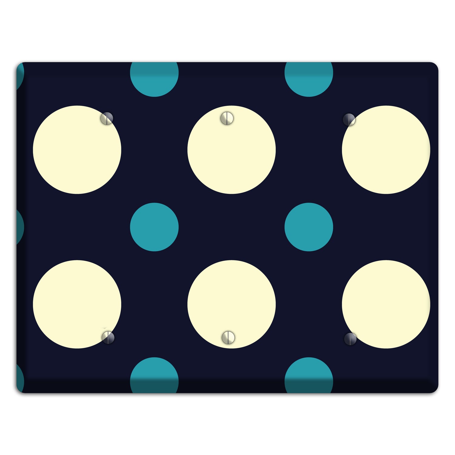 Black with Yellow and Teal Multi Medium Polka Dots 3 Blank Wallplate