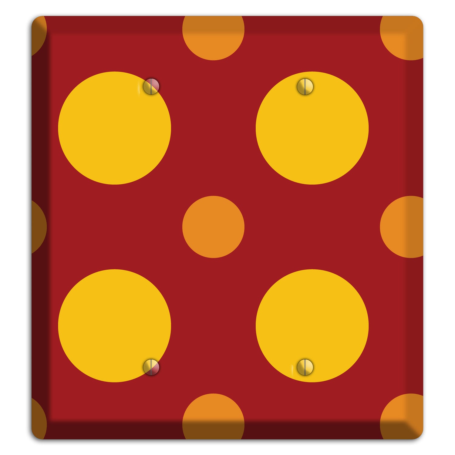 The Red with Multi Orange Multi Medium Polka Dots 2 Blank Wallplate are very unique and cannot be found anywhere else. These USA made metal plates are highly detailed and made with some of the newest UV imaging technology available resulting in photograph quality prints on durable metal switchplates.