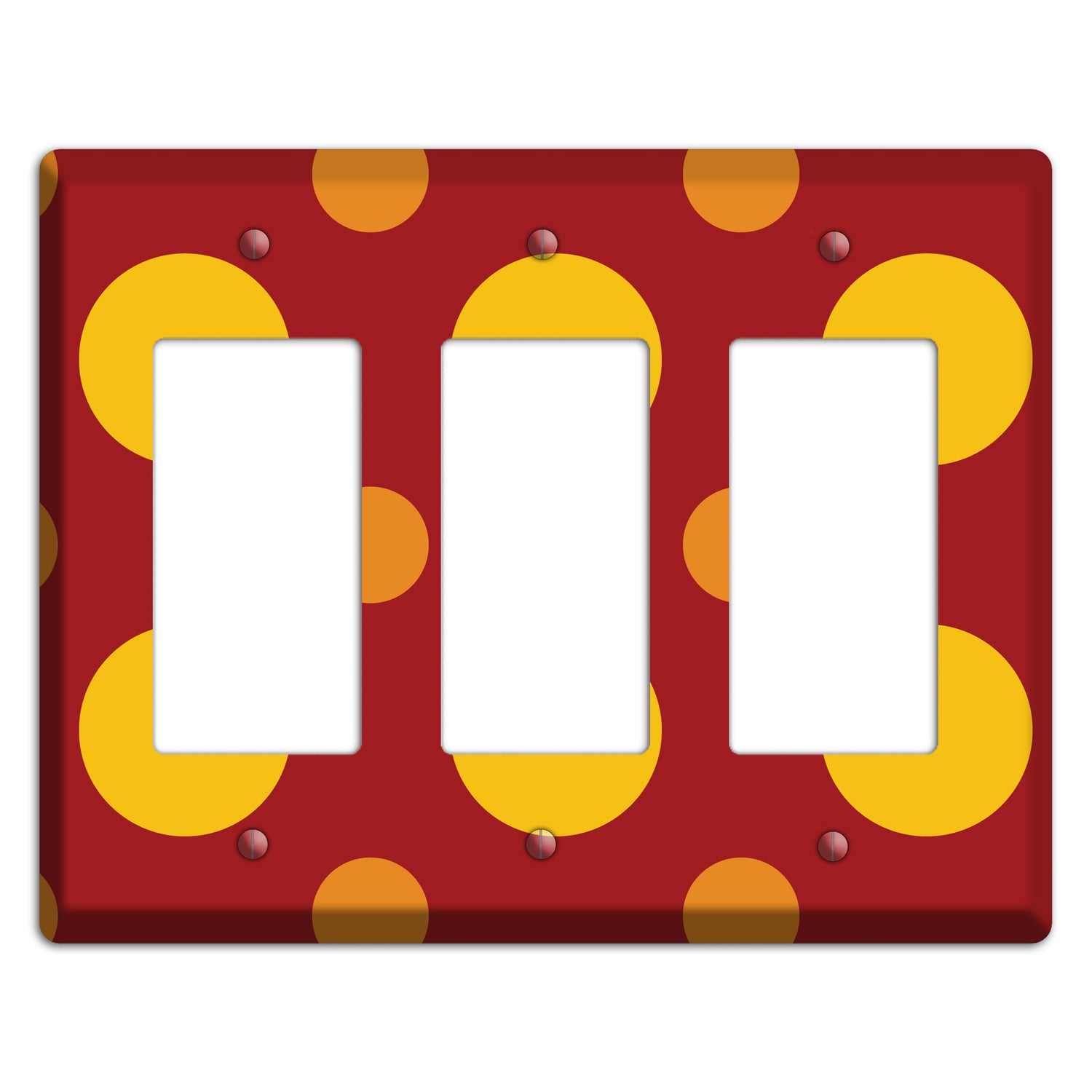 Red with Multi Orange Multi Medium Polka Dots 3 Rocker Wallplate