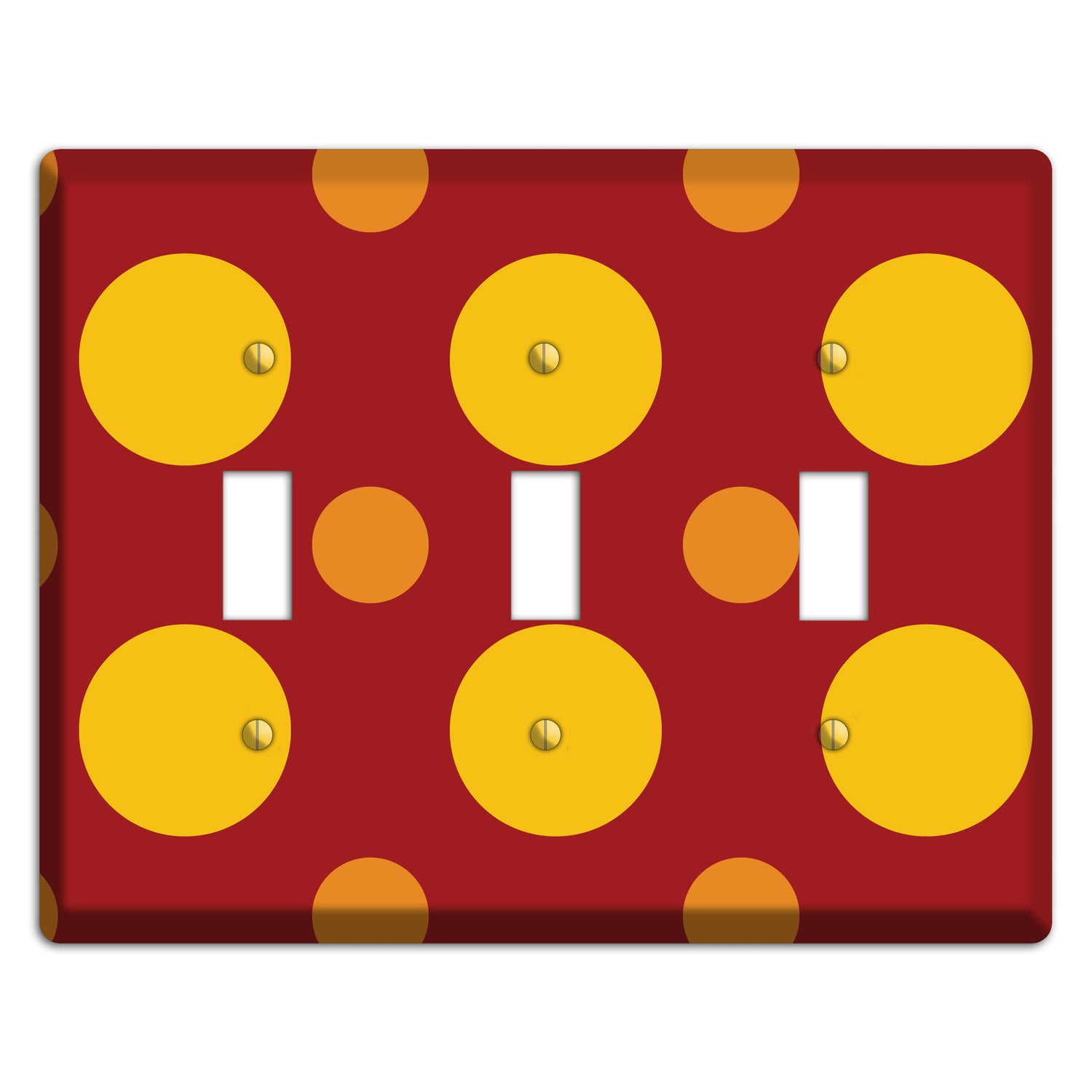 Red with Multi Orange Multi Medium Polka Dots 3 Toggle Wallplate