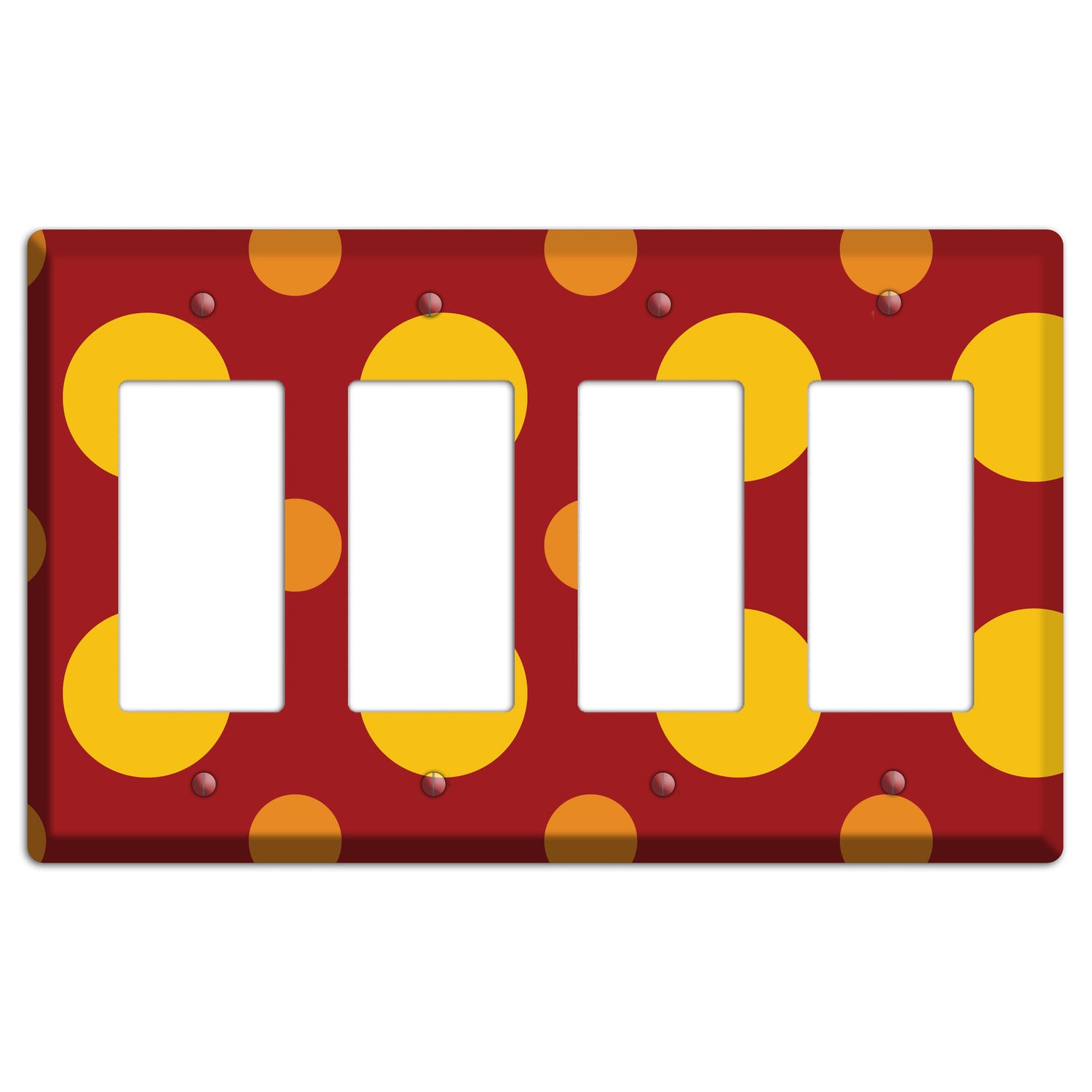 Red with Multi Orange Multi Medium Polka Dots 4 Rocker Wallplate
