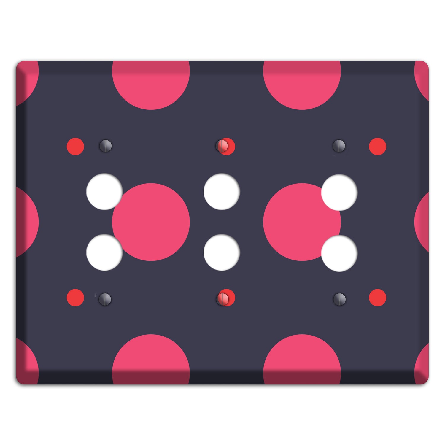 Dark Grey with Fuschia Multi Tiled Medium Dots 3 Pushbutton Wallplate