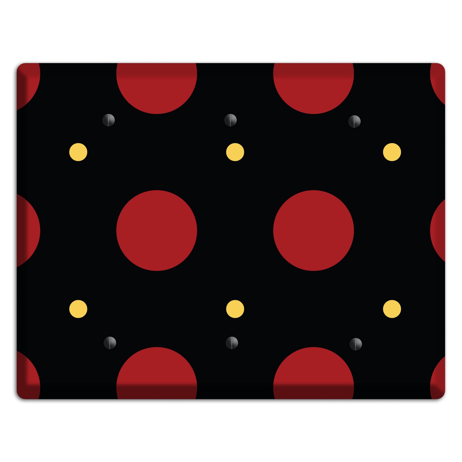 Black with Red and Yellow Multi Tiled Medium Dots 3 Blank Wallplate