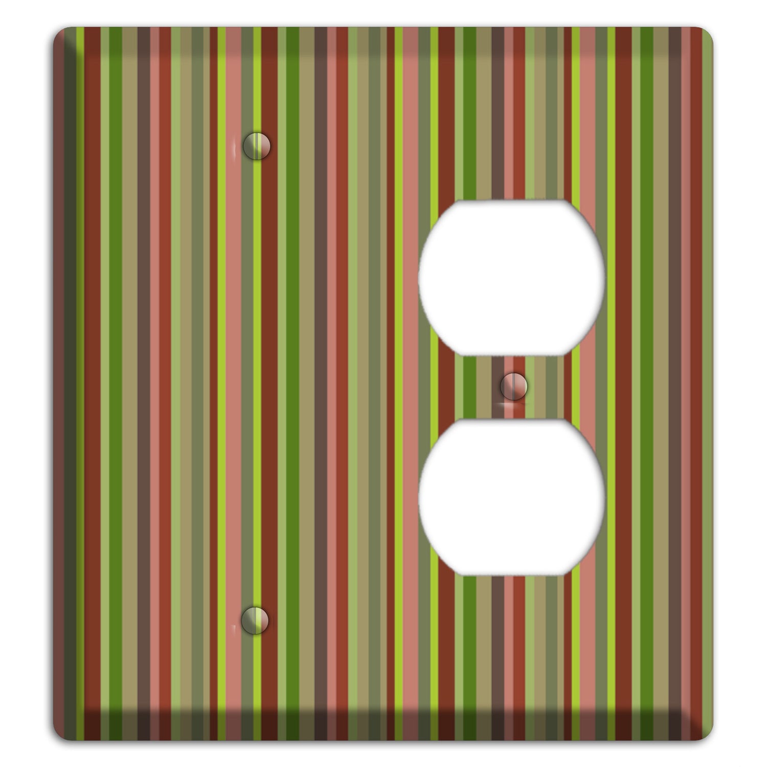 The Multi Olive Burgundy Vertical Stripes Blank / Duplex Wallplate are very unique and cannot be found anywhere else. These USA made metal plates are highly detailed and made with some of the newest UV imaging technology available resulting in photograph quality prints on durable metal switchplates.