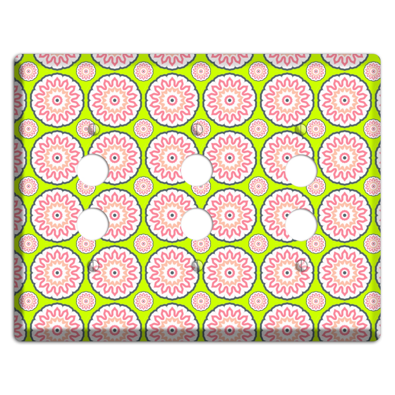 The Green with Tiled Suzani 3 Pushbutton Wallplate are very unique and cannot be found anywhere else. These USA made metal plates are highly detailed and made with some of the newest UV imaging technology available resulting in photograph quality prints on durable metal switchplates.