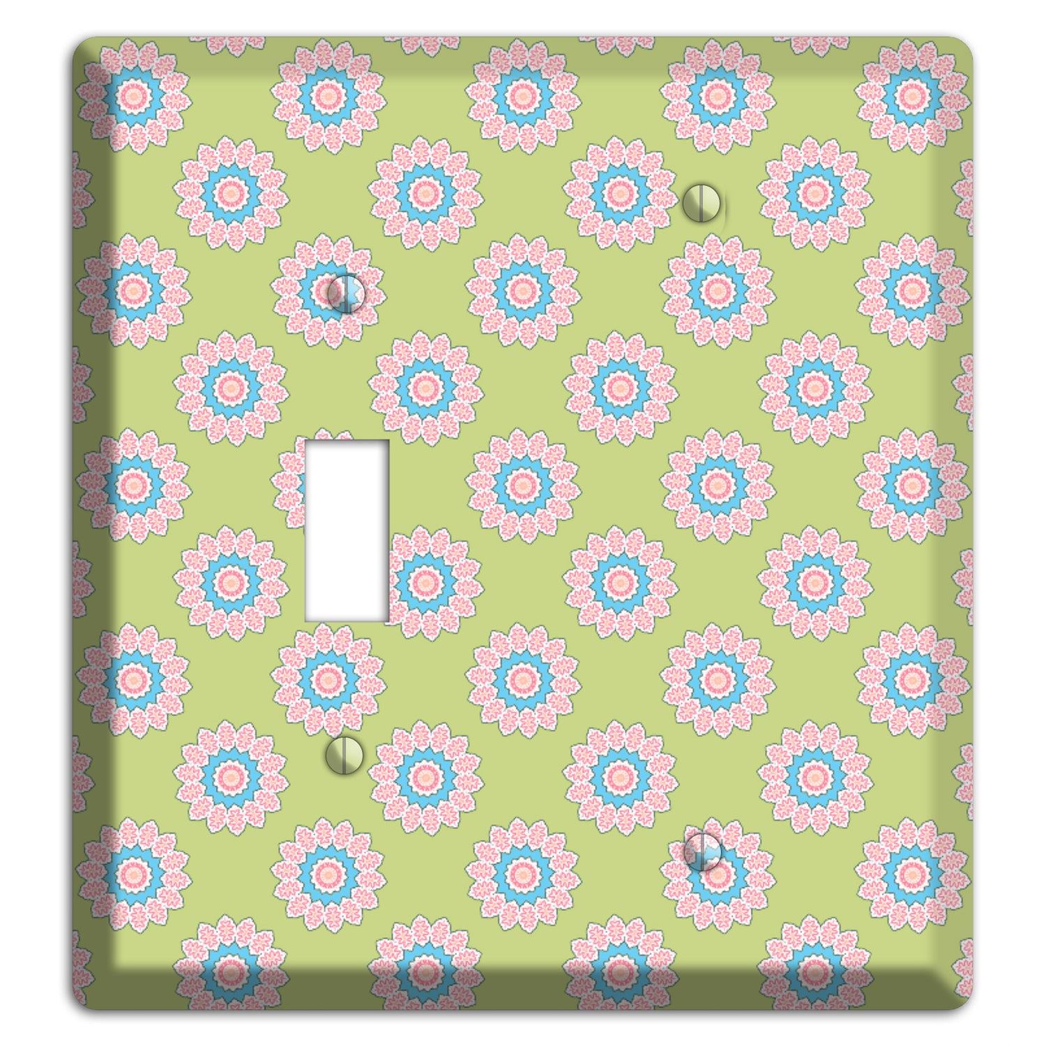 The Lime with Suzani Dots Toggle / Blank Wallplate are very unique and cannot be found anywhere else. These USA made metal plates are highly detailed and made with some of the newest UV imaging technology available resulting in photograph quality prints on durable metal switchplates.