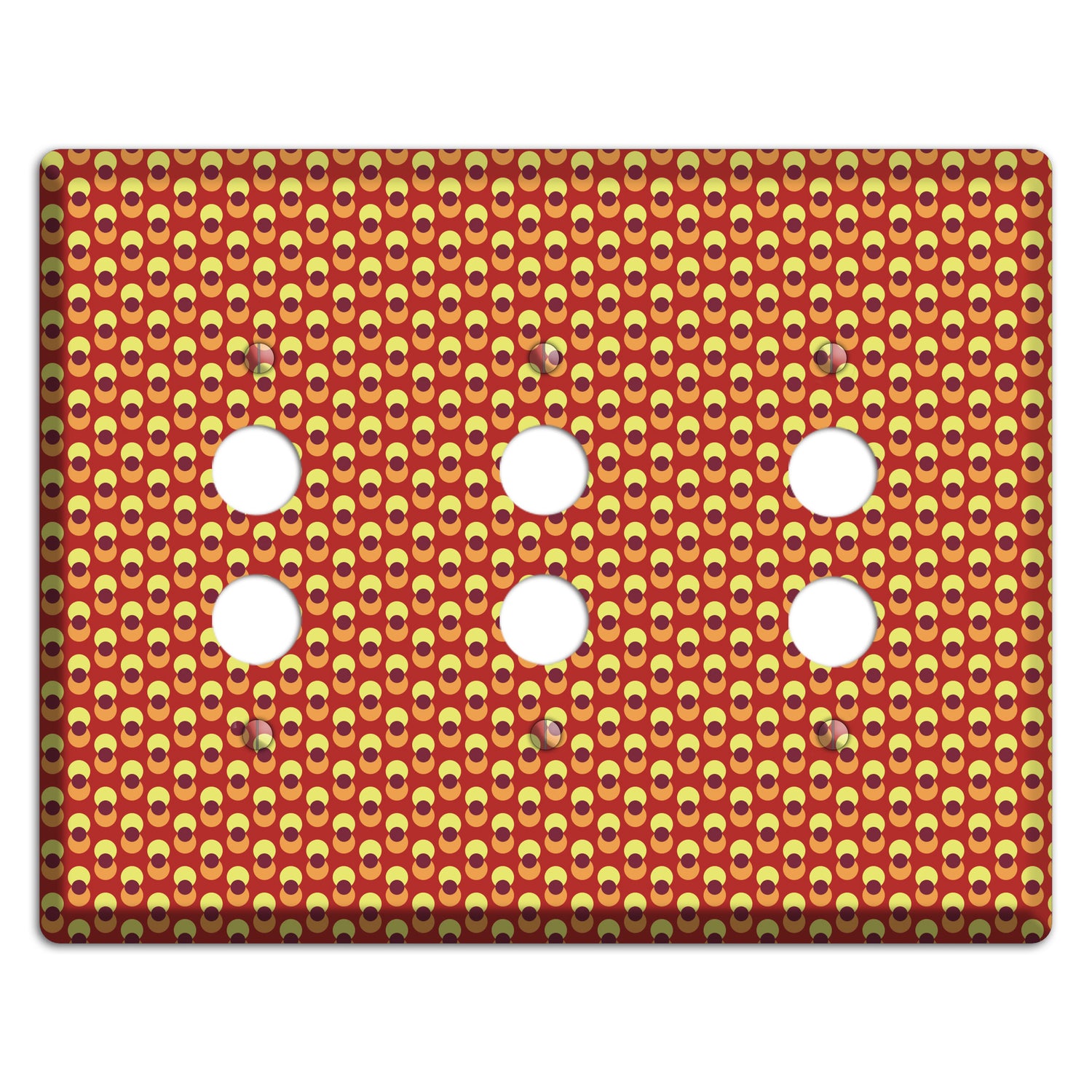 The Red Overlain Dots 3 Pushbutton Wallplate are very unique and cannot be found anywhere else. These USA made metal plates are highly detailed and made with some of the newest UV imaging technology available resulting in photograph quality prints on durable metal switchplates.