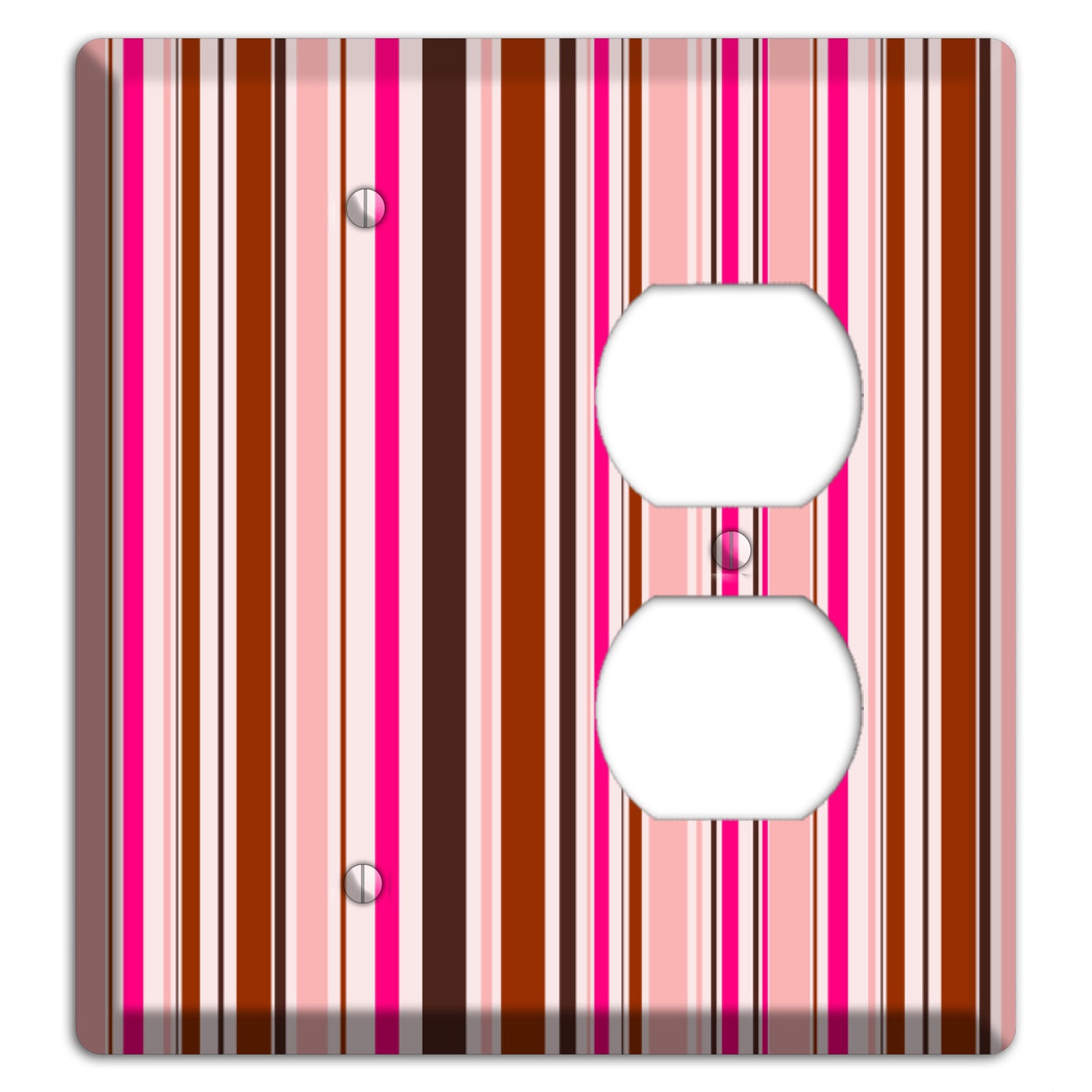 The Pink Stripes Blank / Duplex Wallplate are very unique and cannot be found anywhere else. These USA made metal plates are highly detailed and made with some of the newest UV imaging technology available resulting in photograph quality prints on durable metal switchplates.