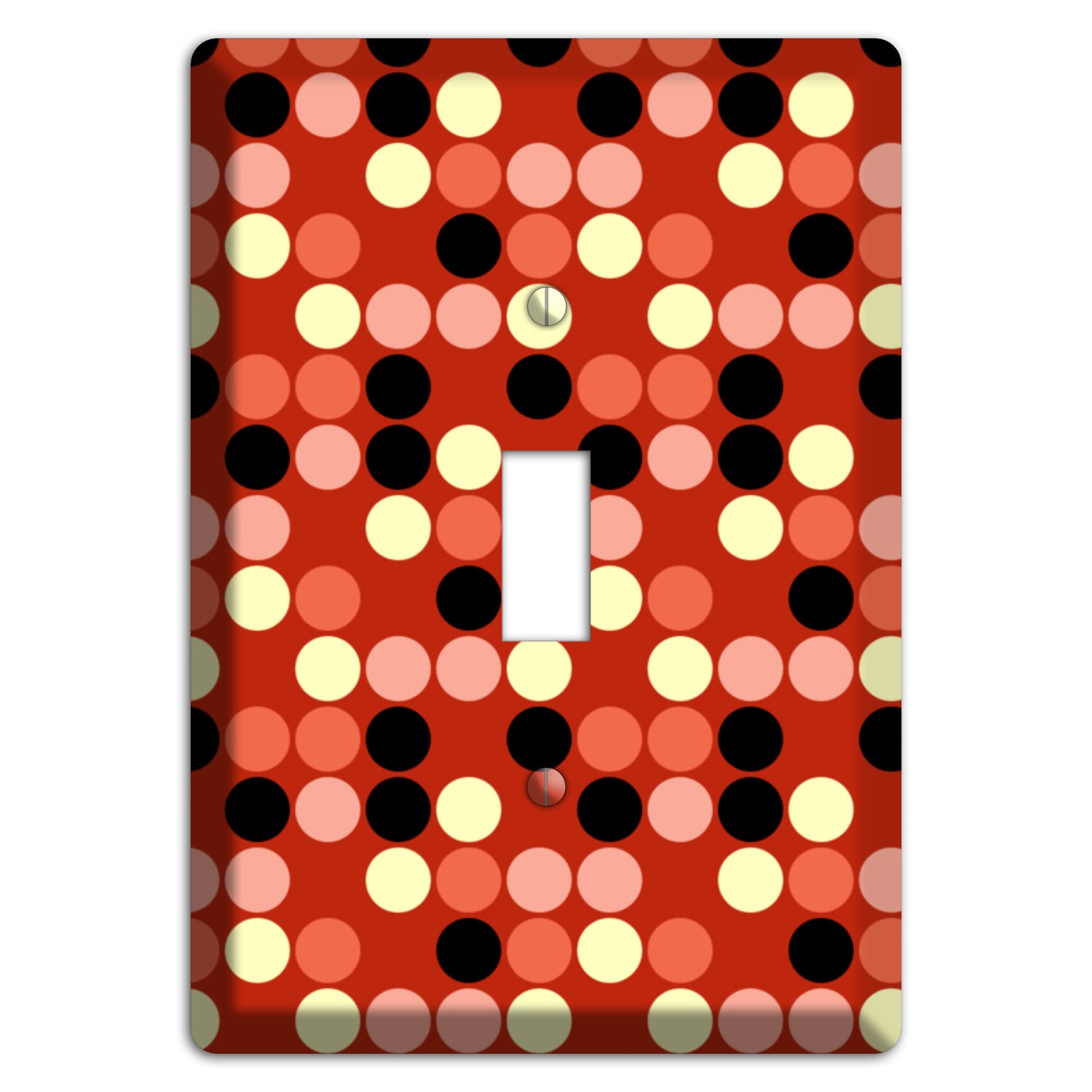 The Multi Color Red Dots Cover Plates are very unique and cannot be found anywhere else. These USA made metal plates are highly detailed and made with some of the newest UV imaging technology available resulting in photograph quality prints on durable metal switchplates.
