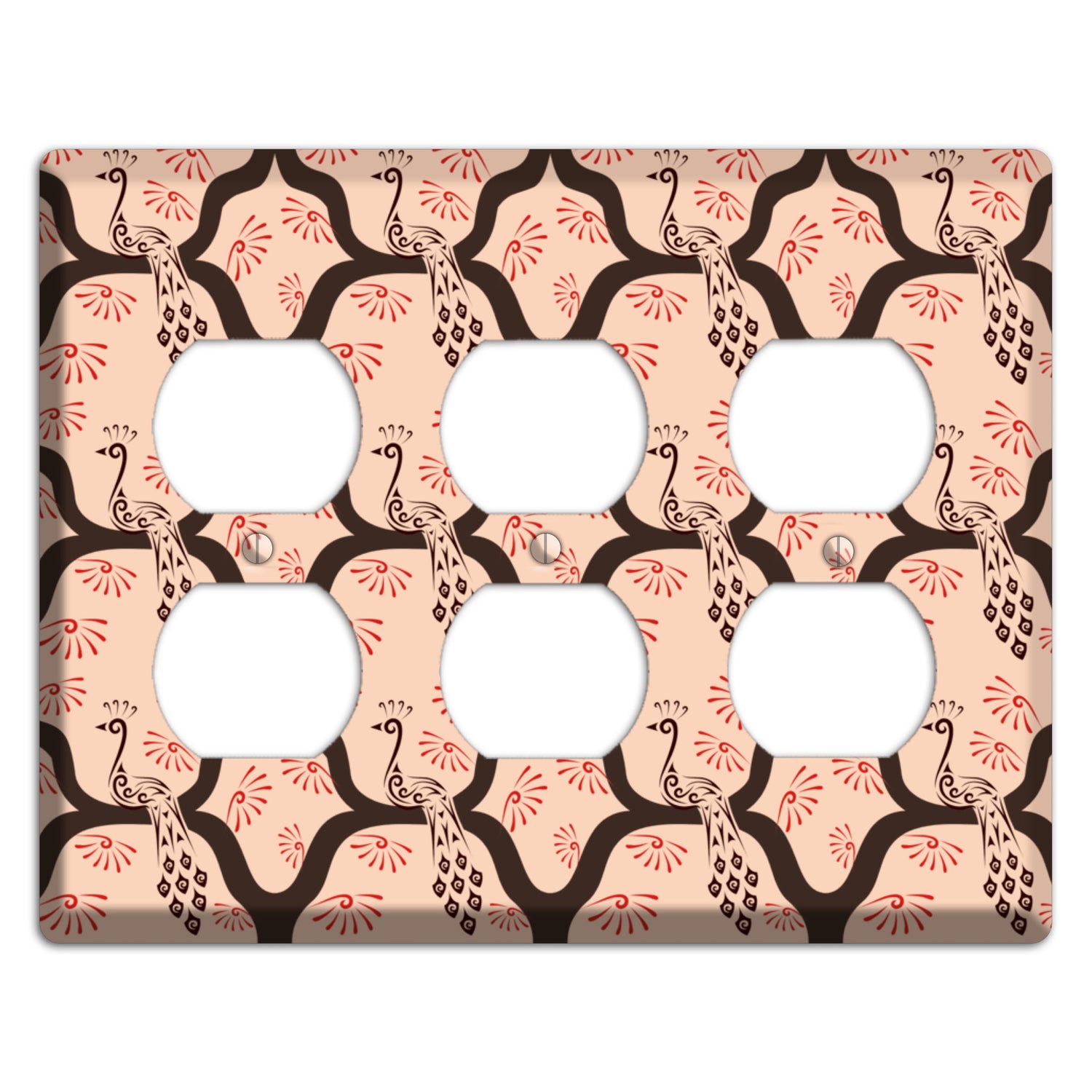 The Light Quatrefoil Peacock 3 Duplex Wallplate are very unique and cannot be found anywhere else. These USA made metal plates are highly detailed and made with some of the newest UV imaging technology available resulting in photograph quality prints on durable metal switchplates.