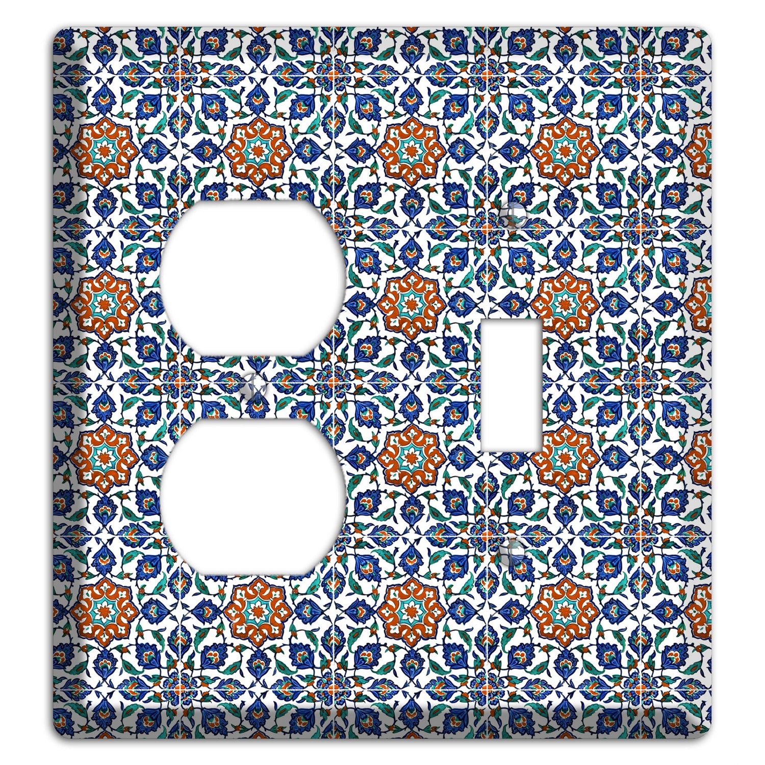 The Ornate Floral Tile Duplex / Toggle Wallplate are very unique and cannot be found anywhere else. These USA made metal plates are highly detailed and made with some of the newest UV imaging technology available resulting in photograph quality prints on durable metal switchplates.