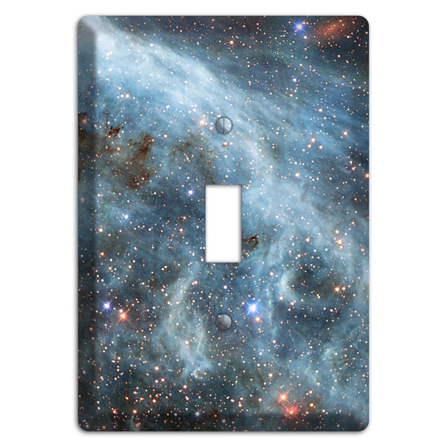 The Magellanic Cloud Cover Plates are very unique and cannot be found anywhere else. These USA made metal plates are highly detailed and made with some of the newest UV imaging technology available resulting in photograph quality prints on durable metal switchplates.
