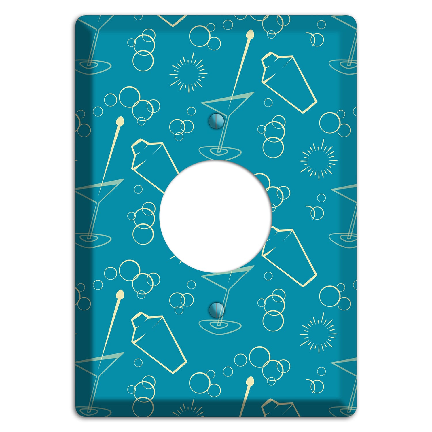 The Teal Cocktail Hour Single Receptacle Wallplate are very unique and cannot be found anywhere else. These USA made metal plates are highly detailed and made with some of the newest UV imaging technology available resulting in photograph quality prints on durable metal switchplates.