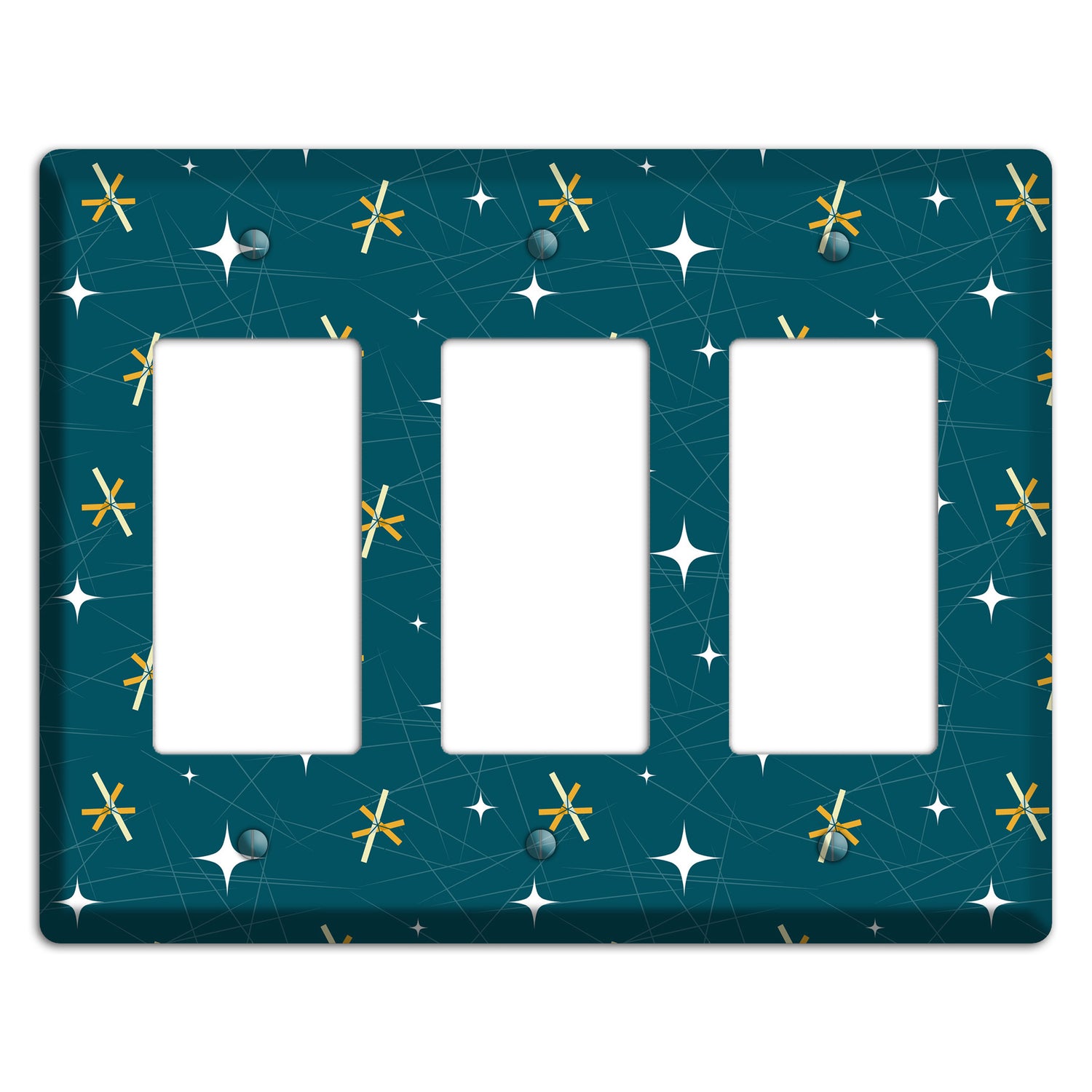 The Navy Mid-Century Atomic 3 Rocker Wallplate are very unique and cannot be found anywhere else. These USA made metal plates are highly detailed and made with some of the newest UV imaging technology available resulting in photograph quality prints on durable metal switchplates.