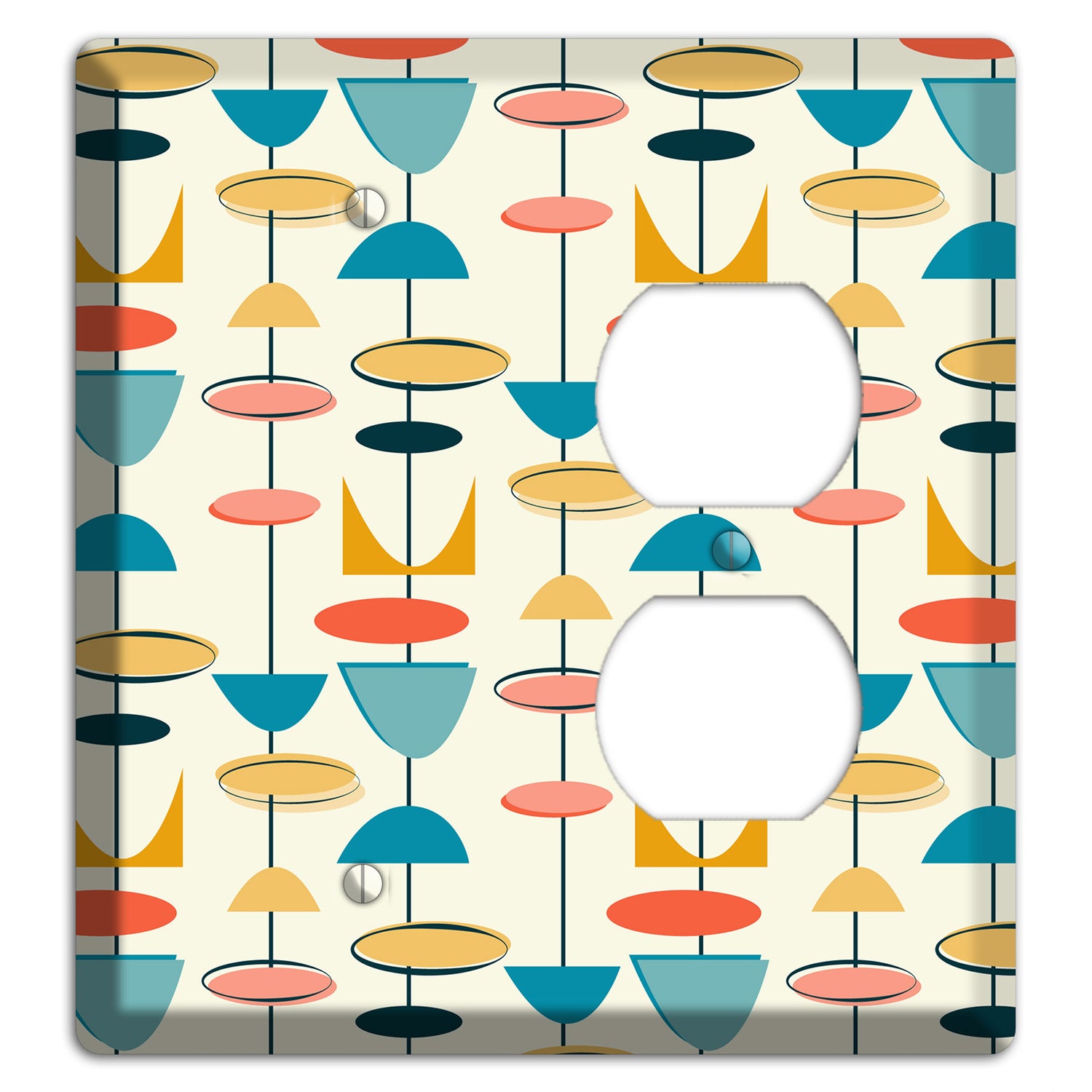 The Retro Shapes Blank / Duplex Wallplate are very unique and cannot be found anywhere else. These USA made metal plates are highly detailed and made with some of the newest UV imaging technology available resulting in photograph quality prints on durable metal switchplates.