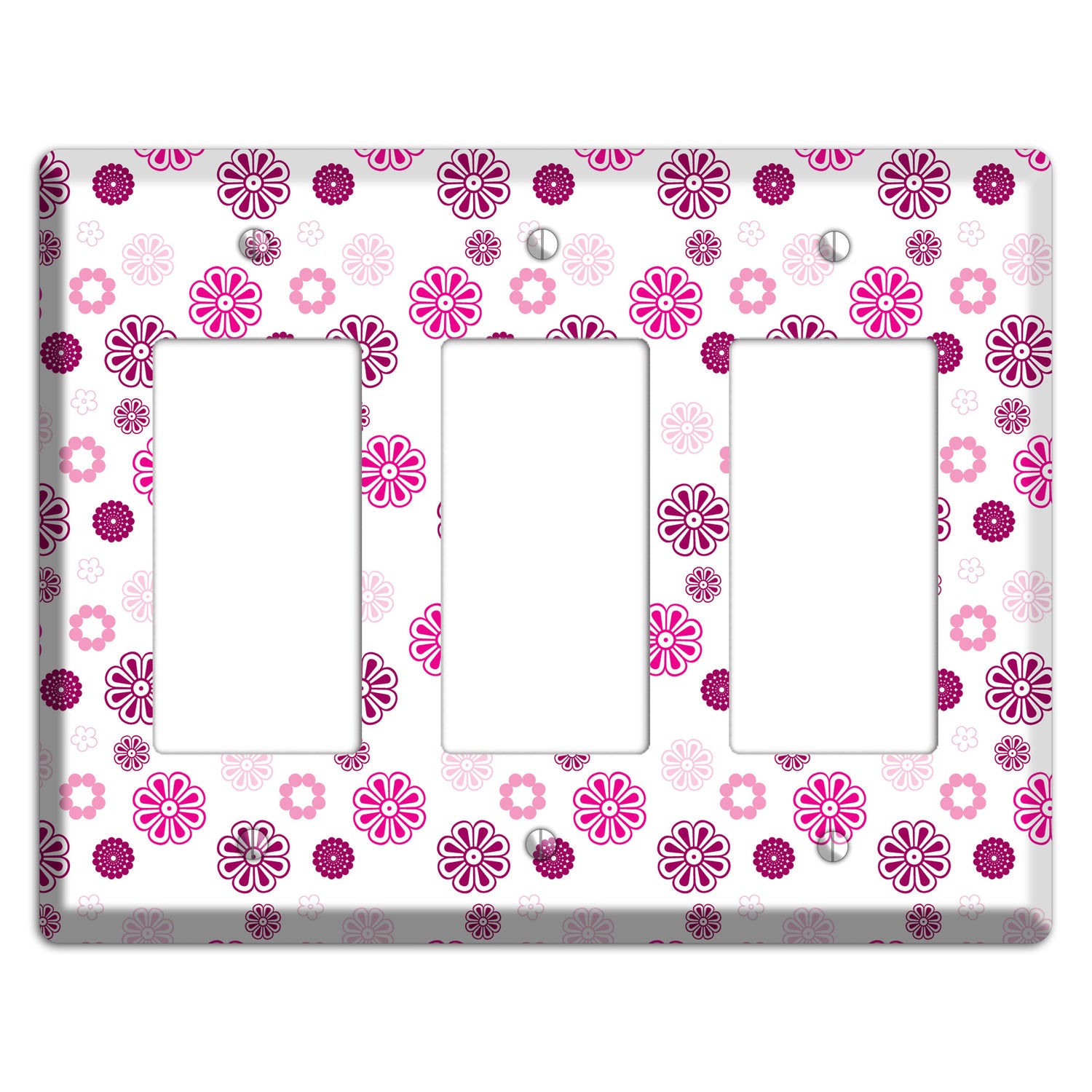 The Maroon and Pink Retro Floral 3 Rocker Wallplate are very unique and cannot be found anywhere else. These USA made metal plates are highly detailed and made with some of the newest UV imaging technology available resulting in photograph quality prints on durable metal switchplates.