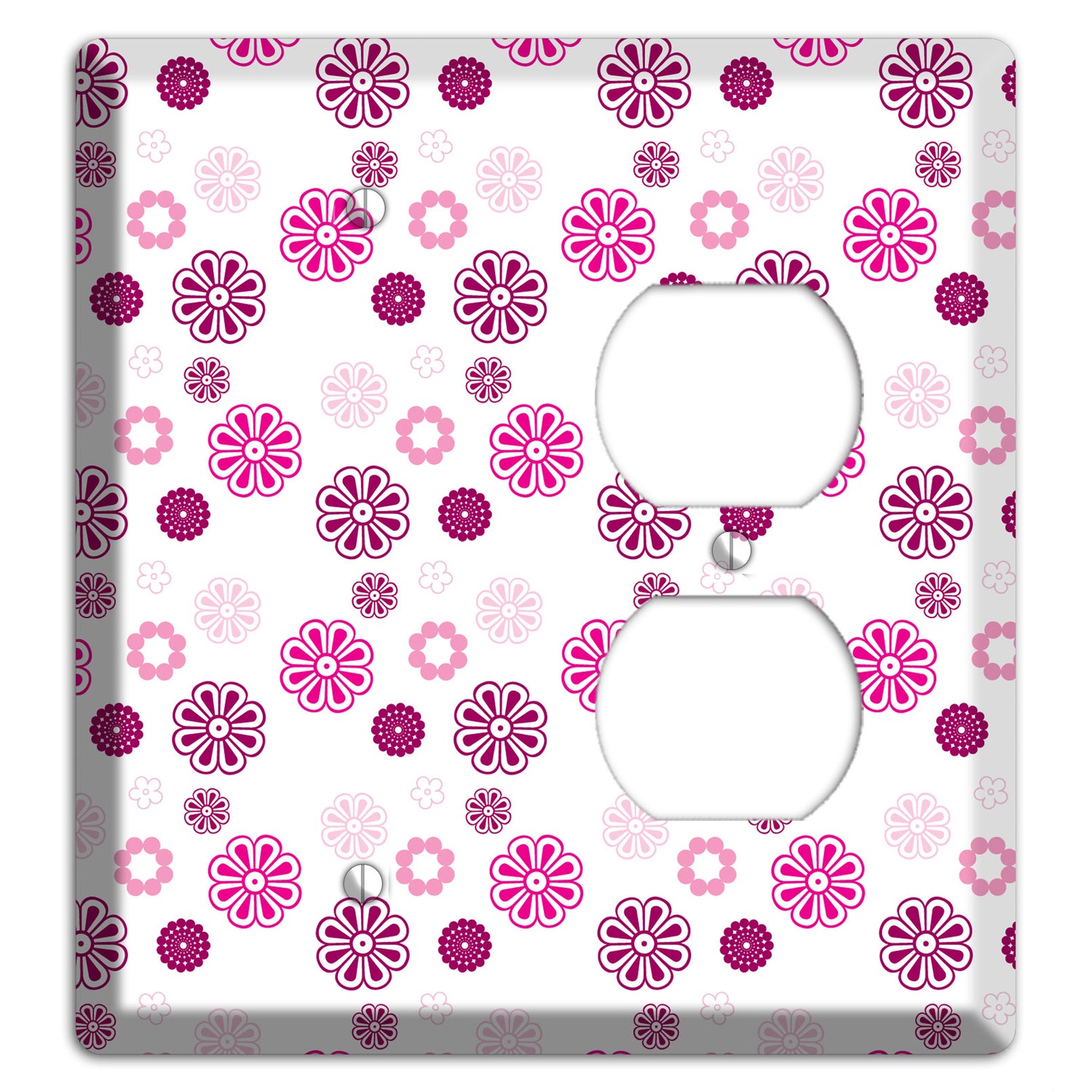 The Maroon and Pink Retro Floral Blank / Duplex Wallplate are very unique and cannot be found anywhere else. These USA made metal plates are highly detailed and made with some of the newest UV imaging technology available resulting in photograph quality prints on durable metal switchplates.
