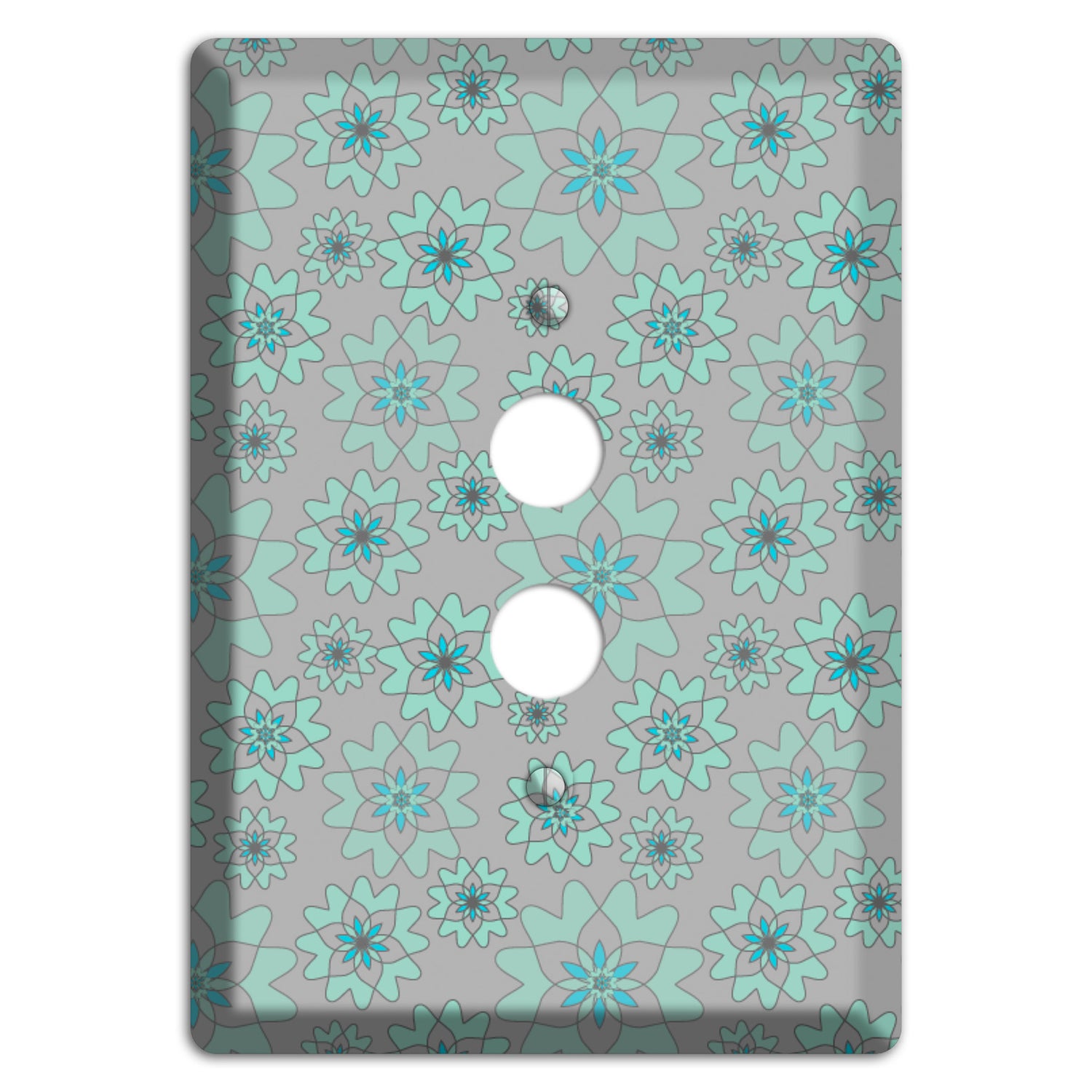 Grey with Aqua Retro Suzani 1 Pushbutton Wallplate