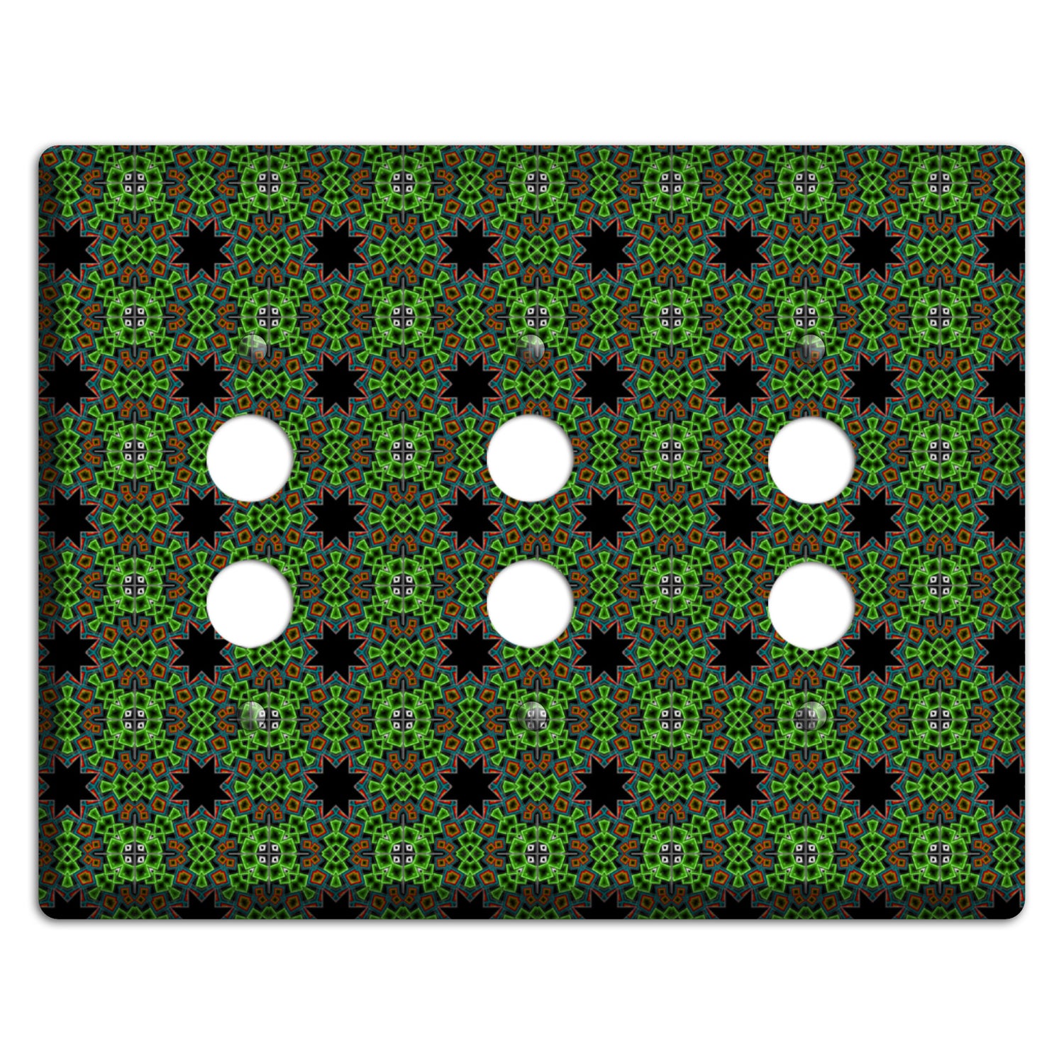 The Green Foulard 2 3 Pushbutton Wallplate are very unique and cannot be found anywhere else. These USA made metal plates are highly detailed and made with some of the newest UV imaging technology available resulting in photograph quality prints on durable metal switchplates.
