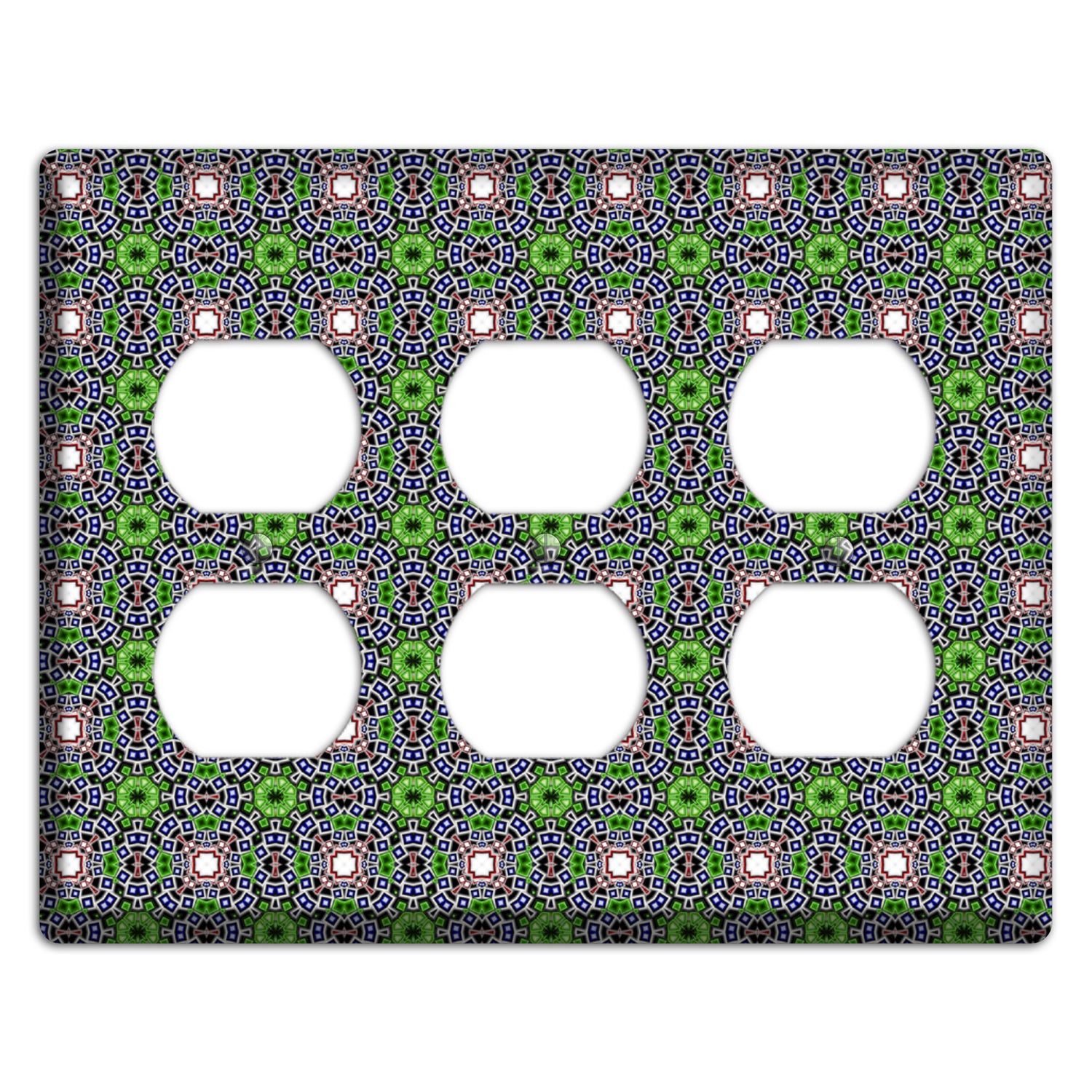 The Green Foulard 4 3 Duplex Wallplate are very unique and cannot be found anywhere else. These USA made metal plates are highly detailed and made with some of the newest UV imaging technology available resulting in photograph quality prints on durable metal switchplates.