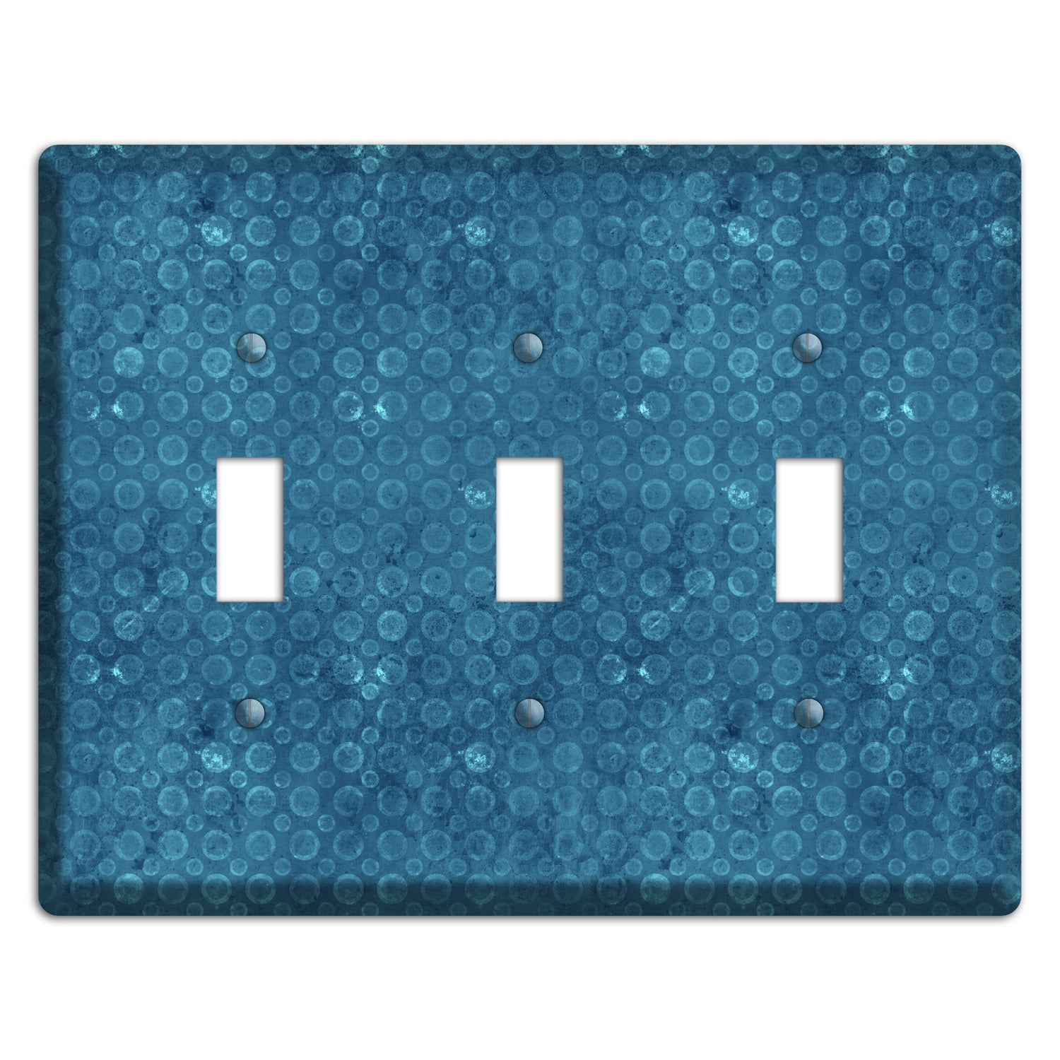 The Turquoise Circles 3 Toggle Wallplate are very unique and cannot be found anywhere else. These USA made metal plates are highly detailed and made with some of the newest UV imaging technology available resulting in photograph quality prints on durable metal switchplates.
