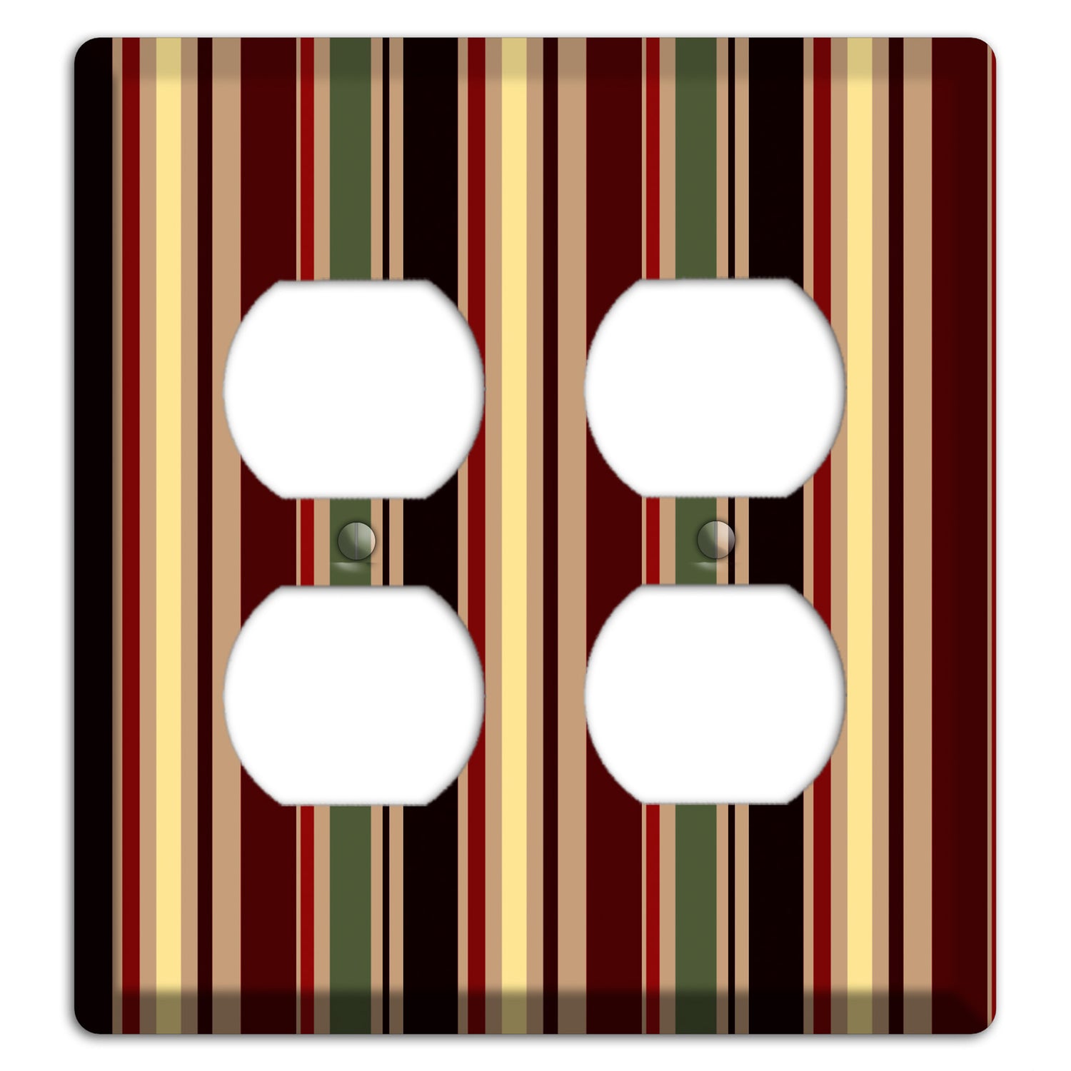 Multi olive and Burgundy Vertical Stripes 2 Duplex Wallplate