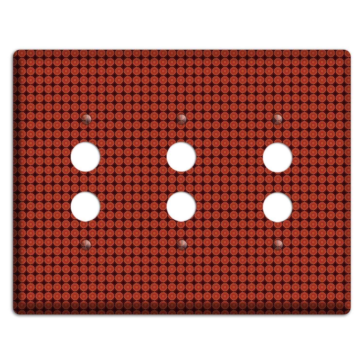 The Maroon with Tiled Red Foulard 3 Pushbutton Wallplate are very unique and cannot be found anywhere else. These USA made metal plates are highly detailed and made with some of the newest UV imaging technology available resulting in photograph quality prints on durable metal switchplates.