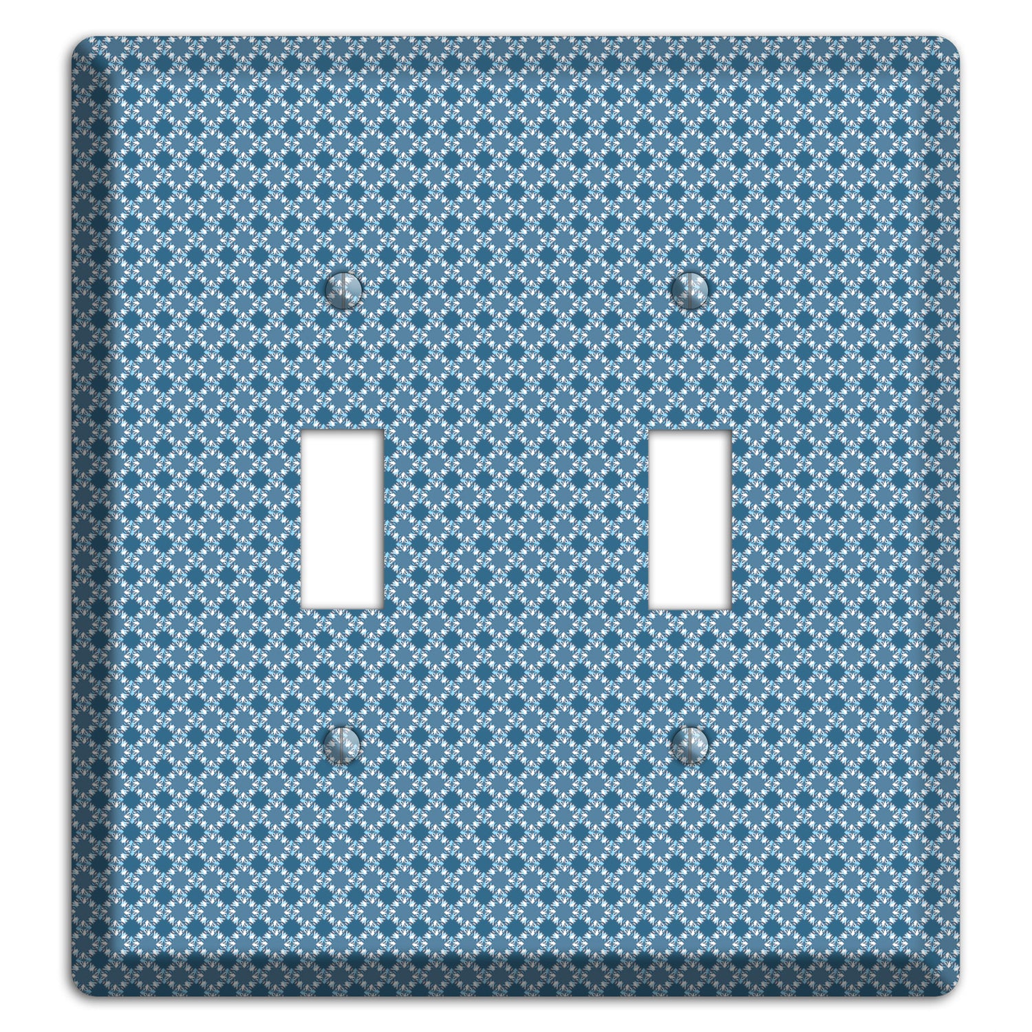 The Multi Blue Checkered Foulard 2 Toggle Wallplate are very unique and cannot be found anywhere else. These USA made metal plates are highly detailed and made with some of the newest UV imaging technology available resulting in photograph quality prints on durable metal switchplates.