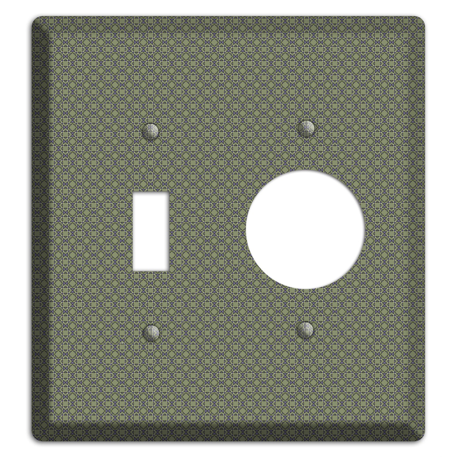 The Multi Olive Foulard Toggle / Receptacle Wallplate are very unique and cannot be found anywhere else. These USA made metal plates are highly detailed and made with some of the newest UV imaging technology available resulting in photograph quality prints on durable metal switchplates.