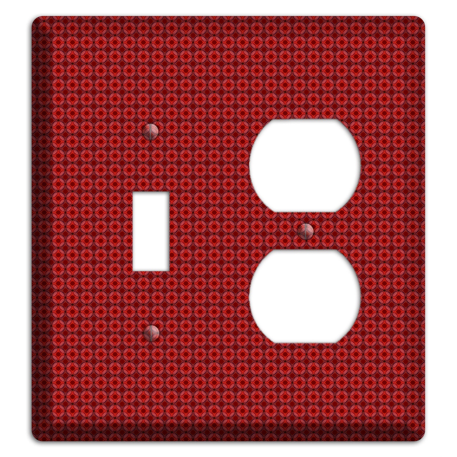 The Multi Red Tiled Foulard Toggle / Duplex Wallplate are very unique and cannot be found anywhere else. These USA made metal plates are highly detailed and made with some of the newest UV imaging technology available resulting in photograph quality prints on durable metal switchplates.