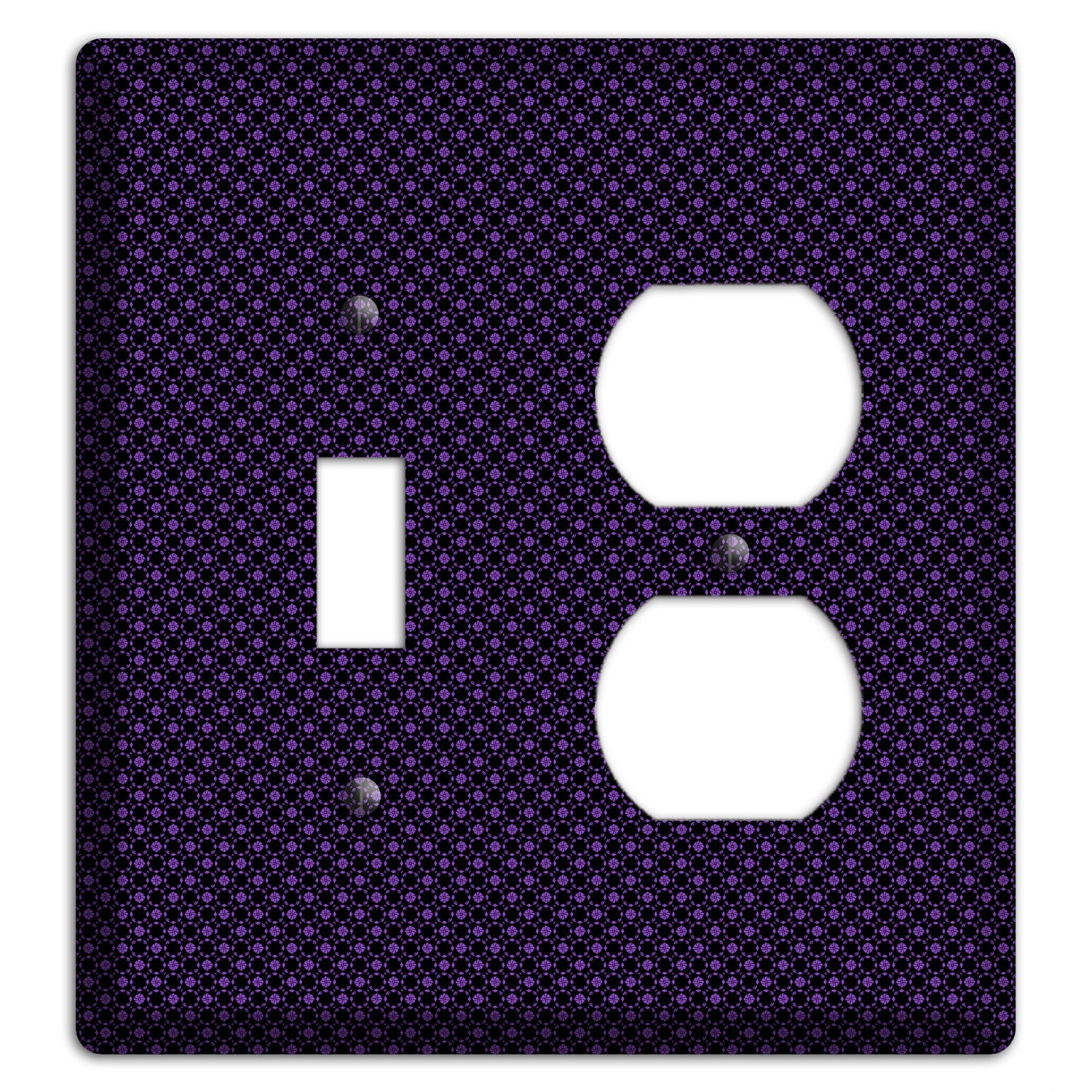 The Multi Purple Geometric Toggle / Duplex Wallplate are very unique and cannot be found anywhere else. These USA made metal plates are highly detailed and made with some of the newest UV imaging technology available resulting in photograph quality prints on durable metal switchplates.