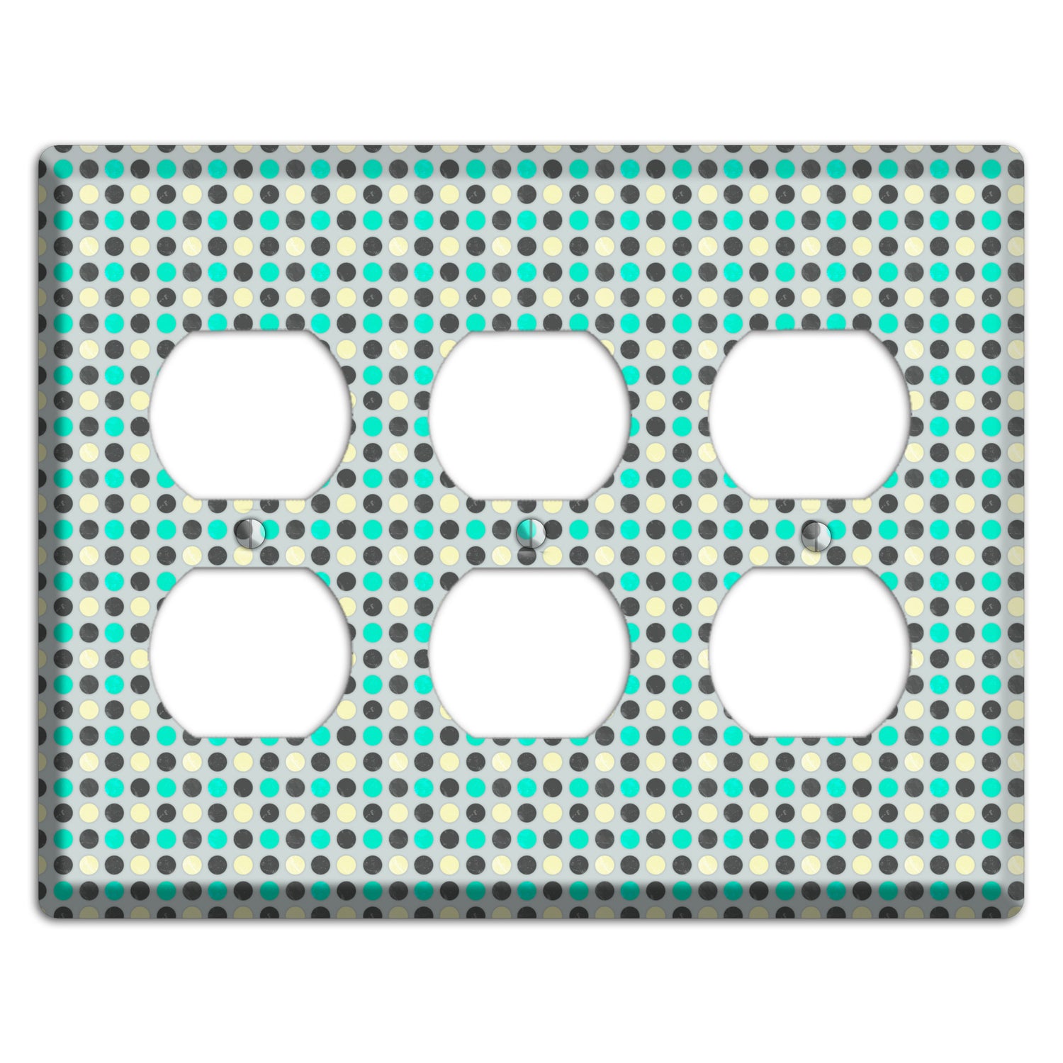 Grey with Black Off White and Turquoise Dots 3 Duplex Wallplate