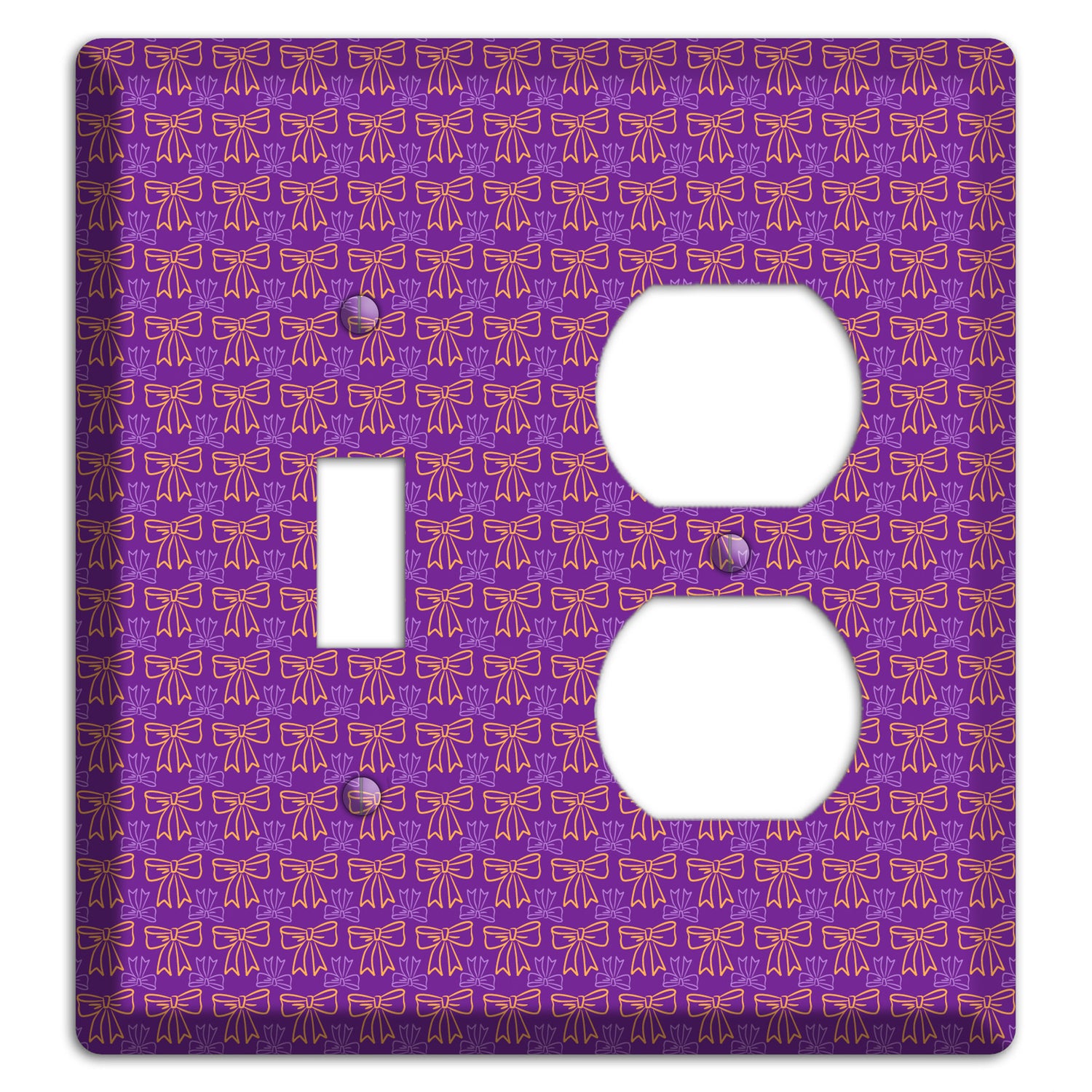 The Purple with Pink Bows Toggle / Duplex Wallplate are very unique and cannot be found anywhere else. These USA made metal plates are highly detailed and made with some of the newest UV imaging technology available resulting in photograph quality prints on durable metal switchplates.
