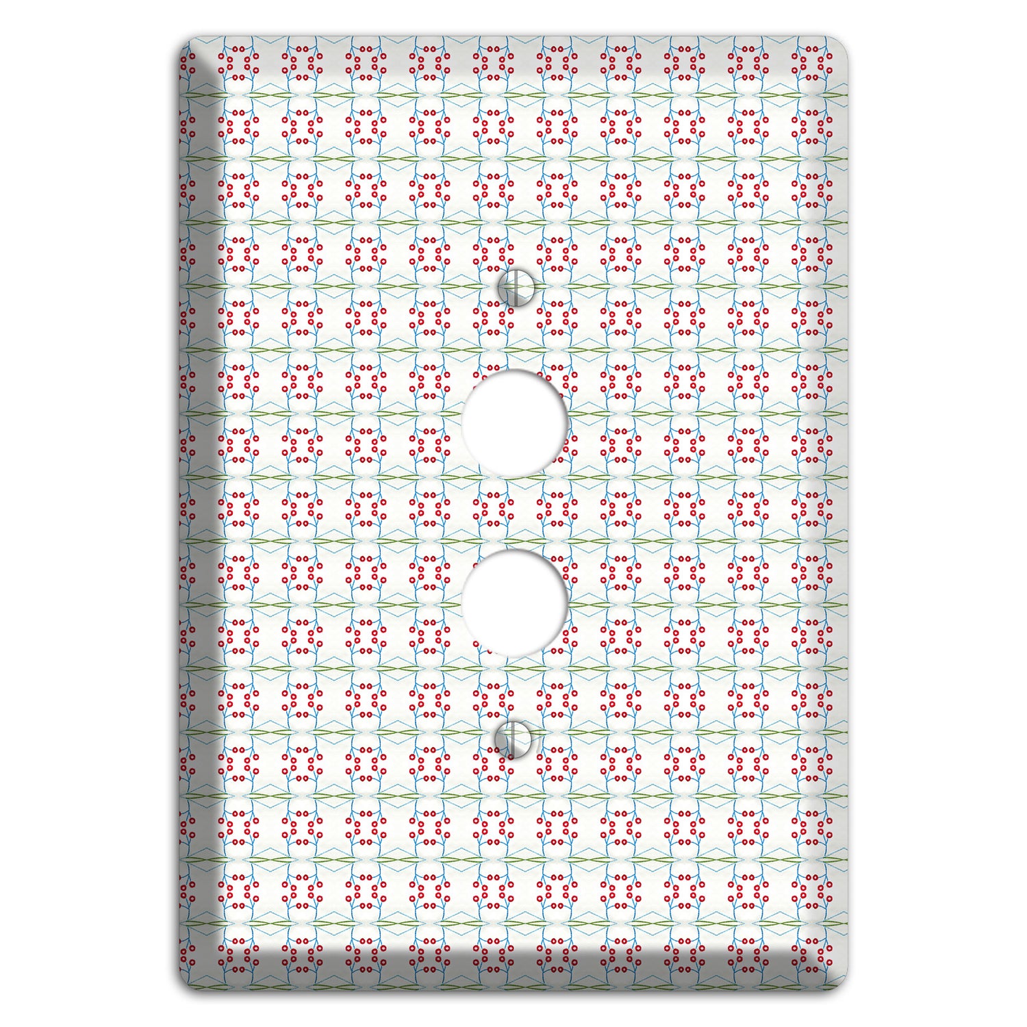 The White with Red and Green Tapestry 1 Pushbutton Wallplate are very unique and cannot be found anywhere else. These USA made metal plates are highly detailed and made with some of the newest UV imaging technology available resulting in photograph quality prints on durable metal switchplates.