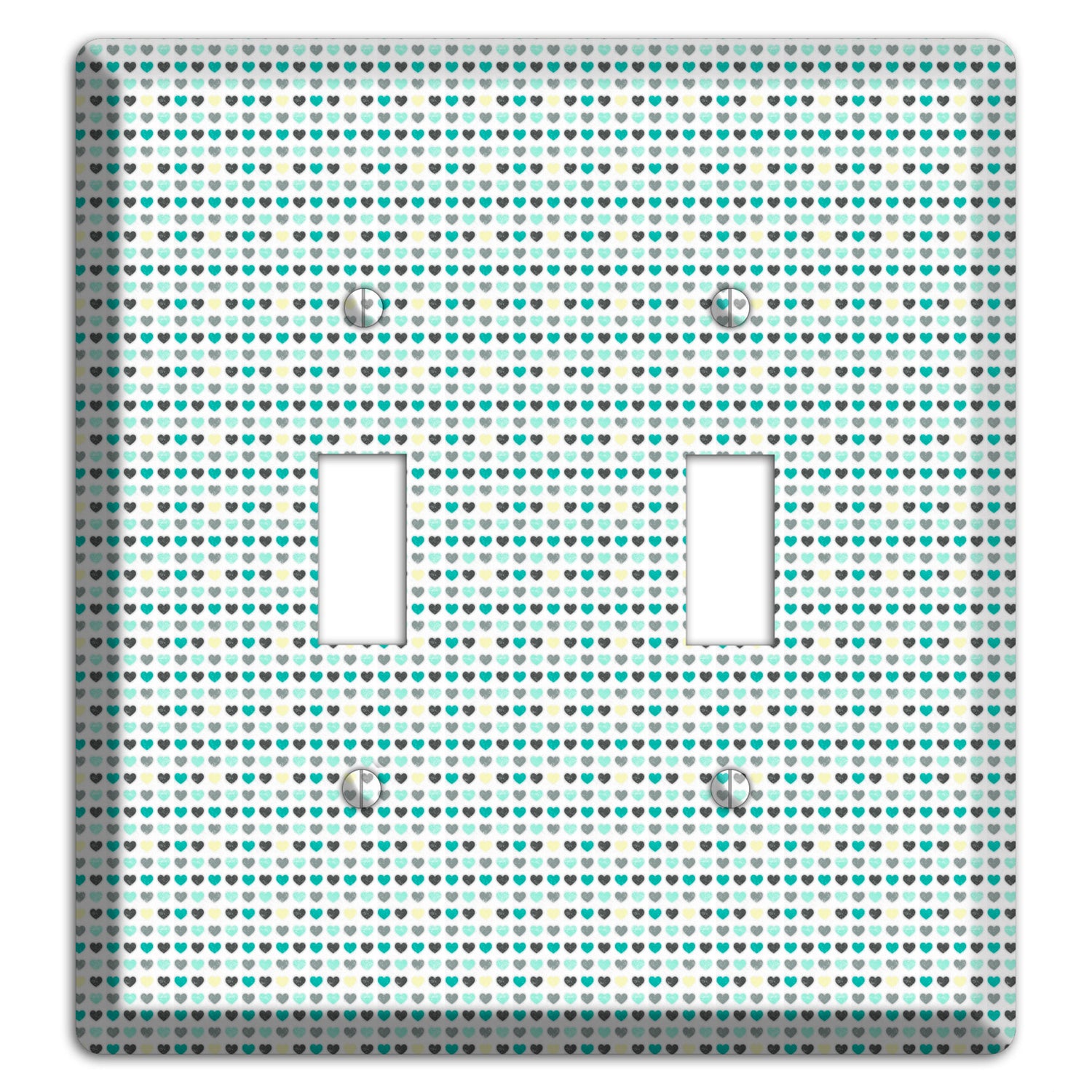 Multi Teal Grey Yellow Optical Hearts 2 Toggle Wallplate