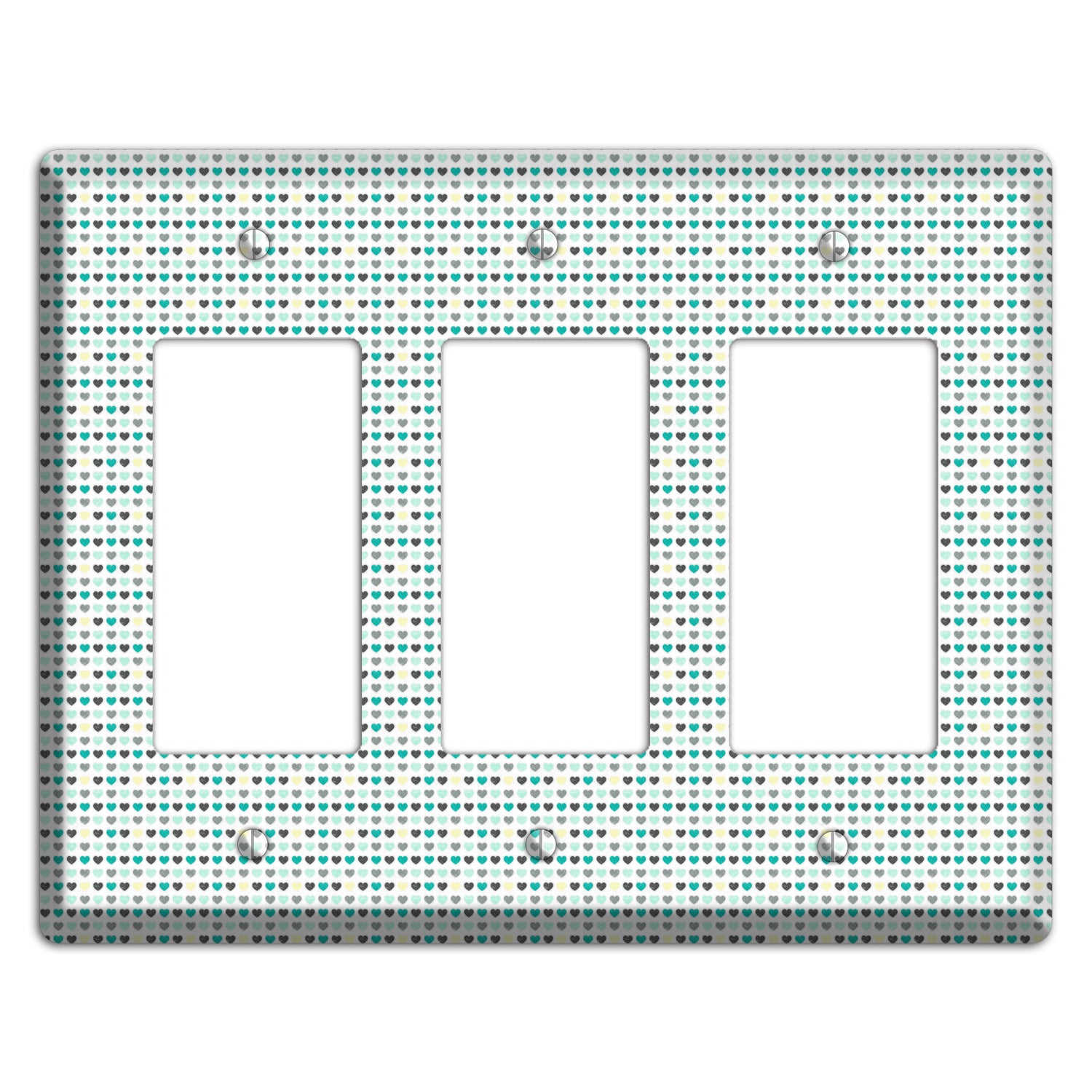 Multi Teal Grey Yellow Optical Hearts 3 Rocker Wallplate
