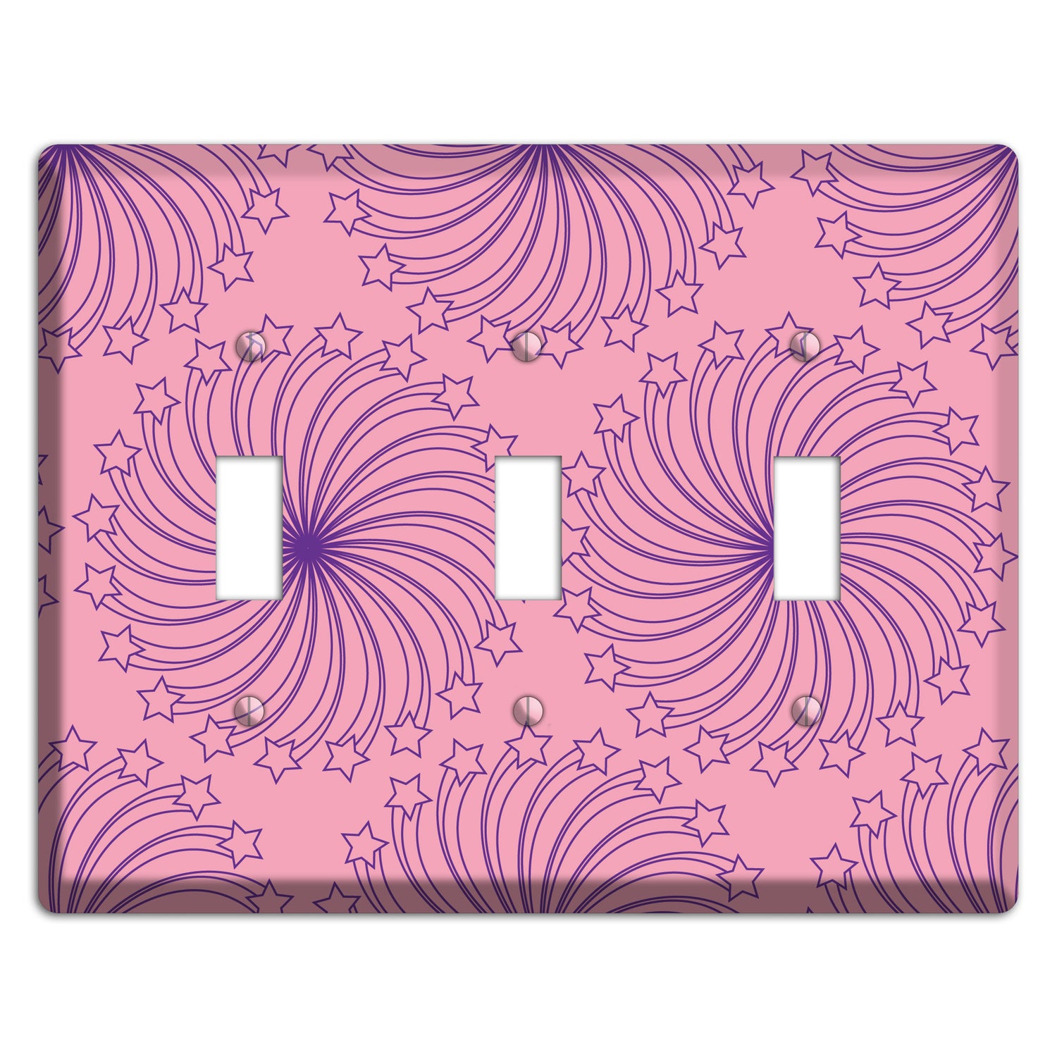 Pink with Purple Star Swirl 3 Toggle Wallplate