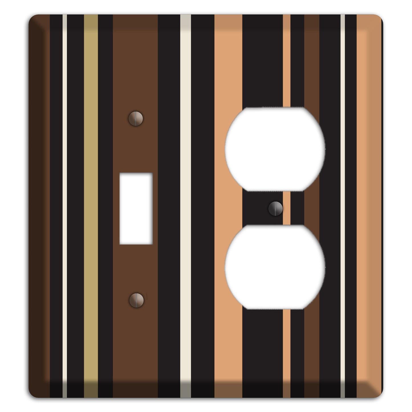The Multi Brown and Coral Vertical Stripe Toggle / Duplex Wallplate are very unique and cannot be found anywhere else. These USA made metal plates are highly detailed and made with some of the newest UV imaging technology available resulting in photograph quality prints on durable metal switchplates.