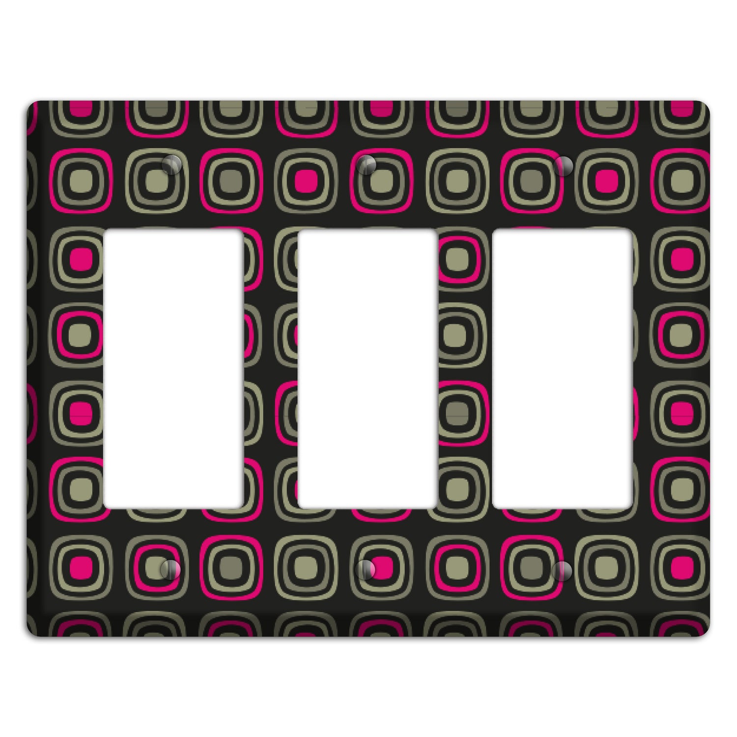 Multi Brown Fuschia Olive Retro Squares 3 Rocker Wallplate